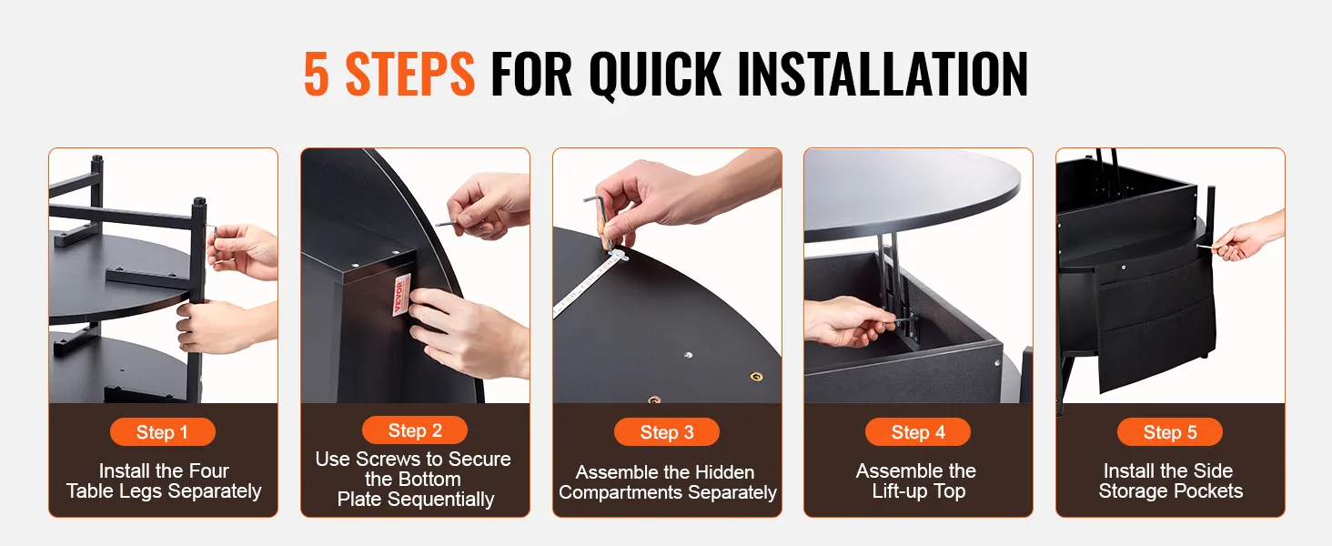 • Easy Installation & Operation: This adjustable lift up coffee table comes with all necessary parts, tools, and assembly instructions with diagrams. Simply follow the instructions for easy and straightforward assembly, suitable for both beginners and experienced users.