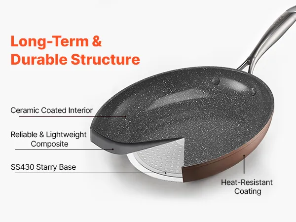 V:Is de coating gemakkelijk te verwijderen? A: Onze pannen zijn gemaakt van hoogwaardige, duurzame materialen zoals gietijzer, aluminium of roestvrij staal. De coating heeft herhaaldelijk kooktesten ondergaan en is bewezen slijtvast en betrouwbaar. Let op de maximale hittebestendigheid van elke pan en vermijd onjuist gebruik, aangezien dit tot schade kan leiden.