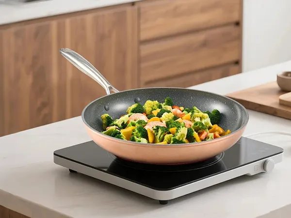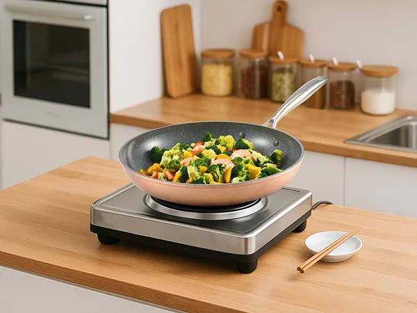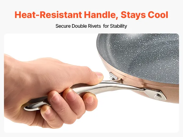 V:Is het handvat hittebestendig? A: Deze pan heeft een gegoten roestvrijstalen handgreep die koel blijft, zelfs tijdens koken op hoge temperatuur. De geklonken constructie zorgt voor een veilige, wiebelvrije verbinding, terwijl de ergonomische vorm de polsbelasting tijdens het roeren vermindert.