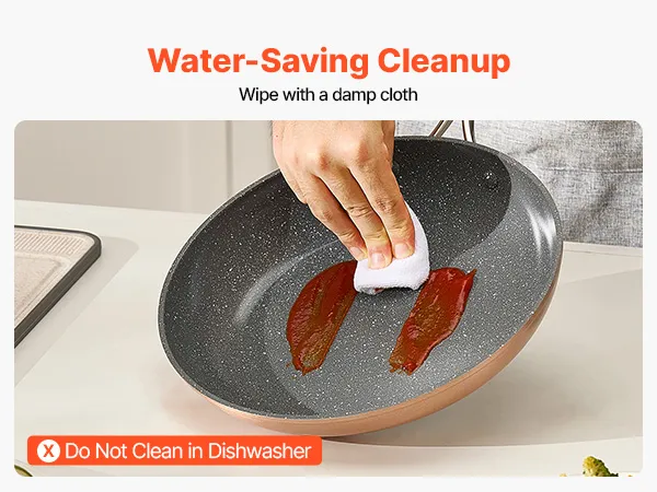 Onderhoudsvriendelijk: Deze aluminium koekenpannenset is in enkele seconden schoon. Na afkoeling afwassen met warm zeepsop en een zachte spons. Let op: Niet vaatwasmachinebestendig.