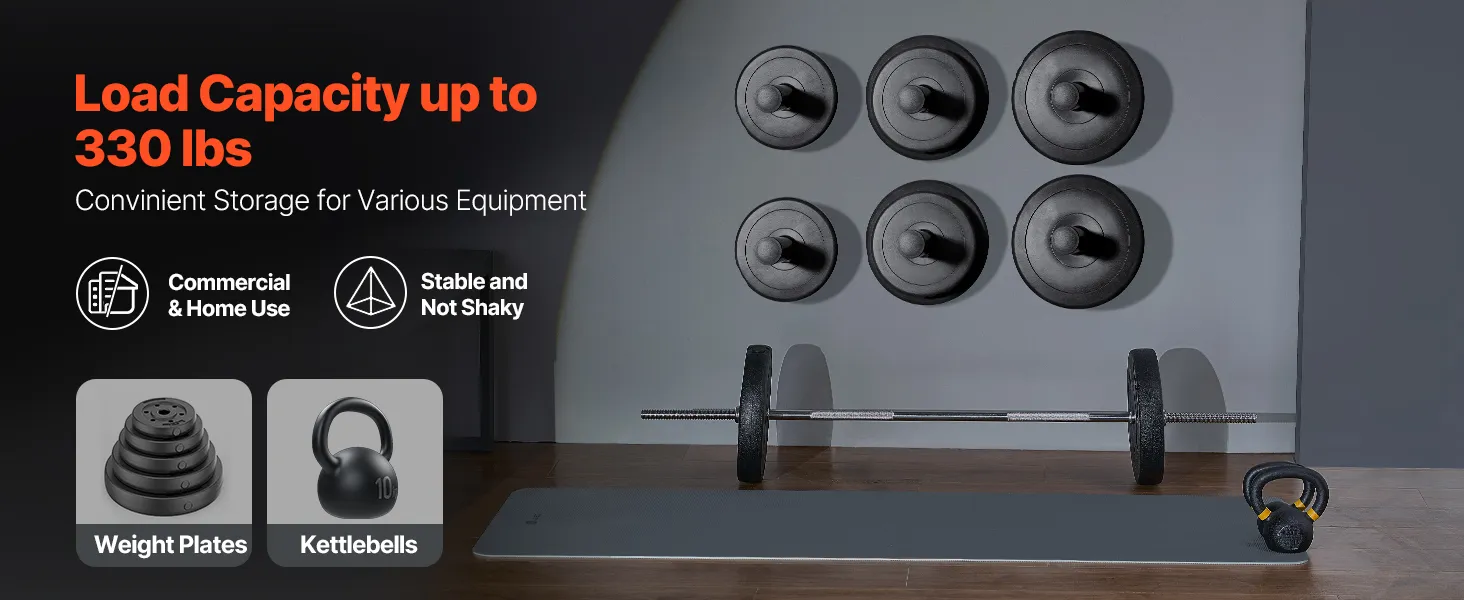 Strong and Safe Load Capacity: The each of the weight plate holder can support up to 330 lbs, providing a solid foundation for your training without safety concerns when storing multiple heavy weight plates.