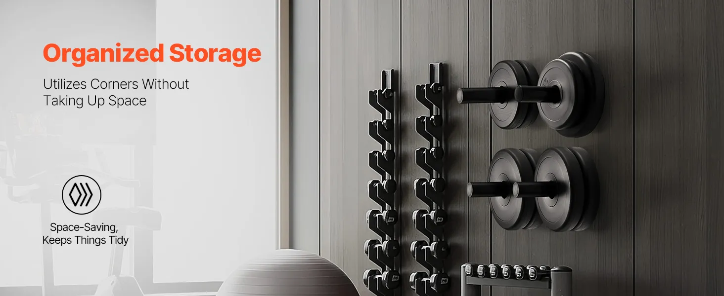 With a compact structure, this multifunctional weight plate rack maximizes space utilization. Whether in a crowded garage or a planned home gym, it efficiently uses every inch, ensuring a tidy and organized workout environment.