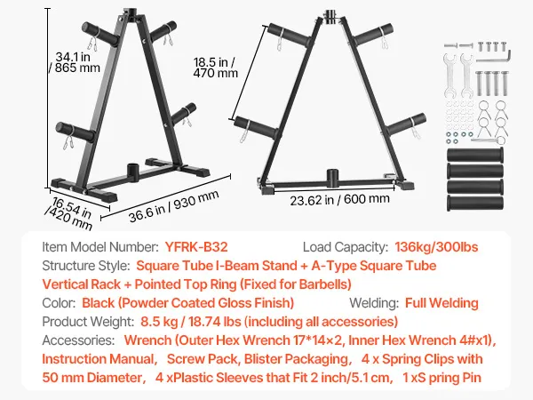 Deze standaard halterschijfstandaard is ontworpen voor een draagvermogen van maximaal 136 kg en biedt consistente stabiliteit en veiligheid, ongeacht het aantal opgeslagen zware apparatuur.