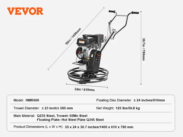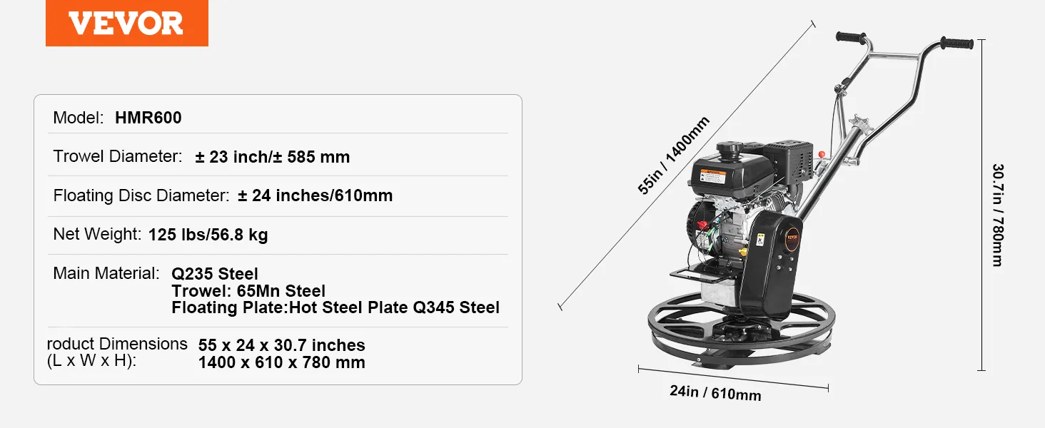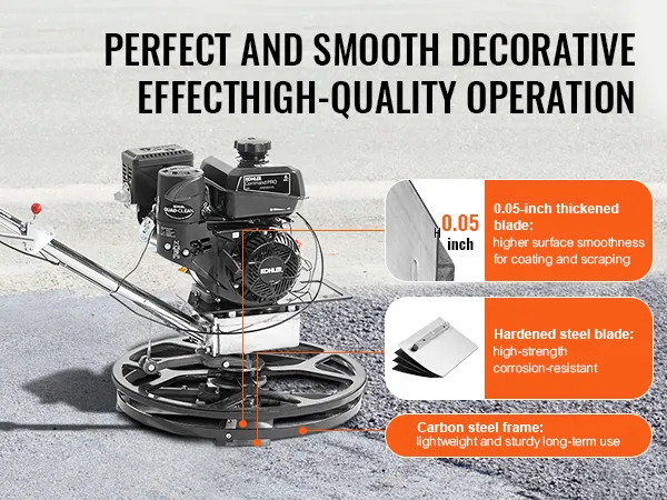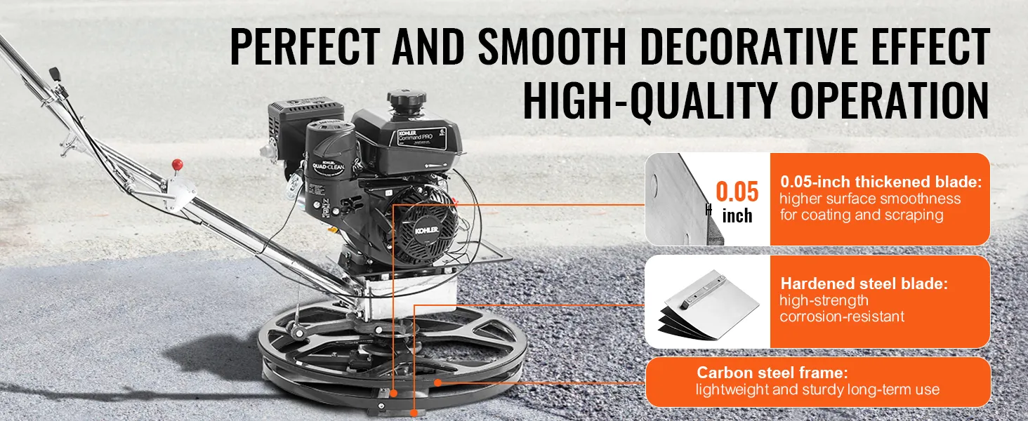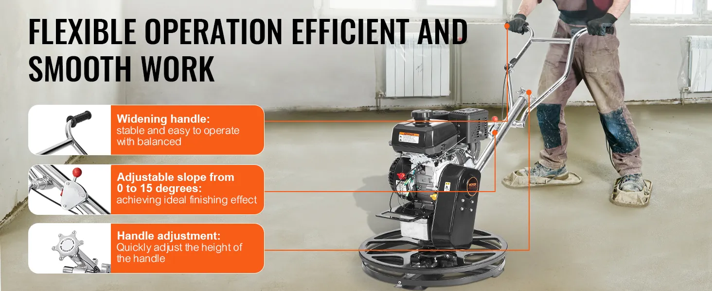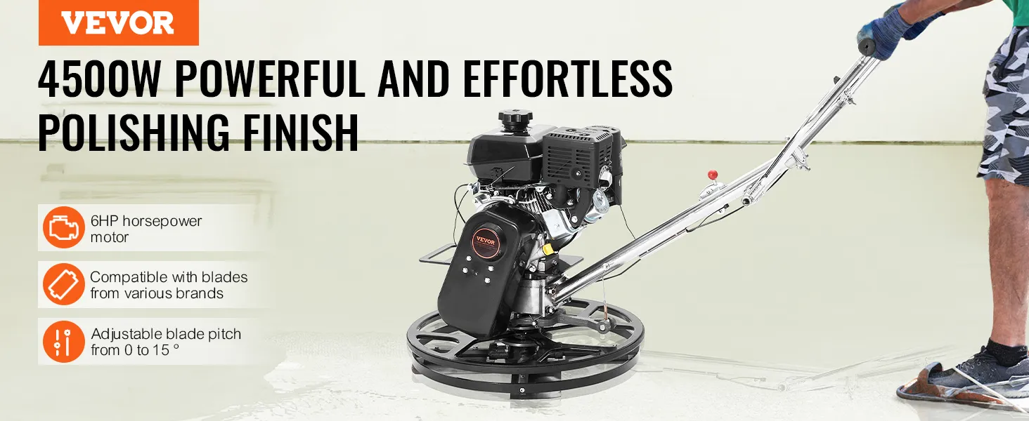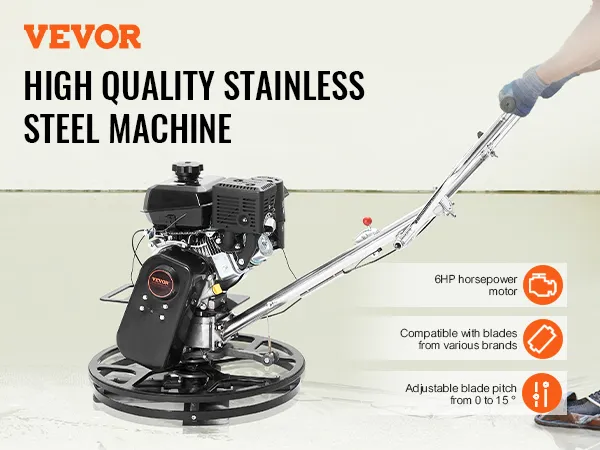 De VEVOR Power Walk-behind cement troffel is een krachtpatser op bouwplaatsen. Hij is uitgerust met een krachtige 6HP KOHLER benzinemotor. Deze motor drijft een polijstmachine aan met snelheden tot 3600 RPM. De troffel zorgt voor hoge prestaties onder zware omstandigheden. U kunt hem effectief beheren voor grootschalige bouwprojecten. Allereerst geeft het apparaat prioriteit aan veiligheid in zijn ontwerp. De centrifugaalontstekingsschakelaar schakelt de motor automatisch uit als deze de controle verliest. De gashendel helpt u eenvoudig het toerental van de motor aan te passen, zodat alles onder controle is. U kunt op deze troffel vertrouwen voor zowel efficiëntie als veiligheid.