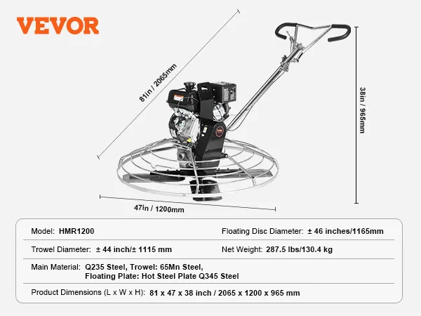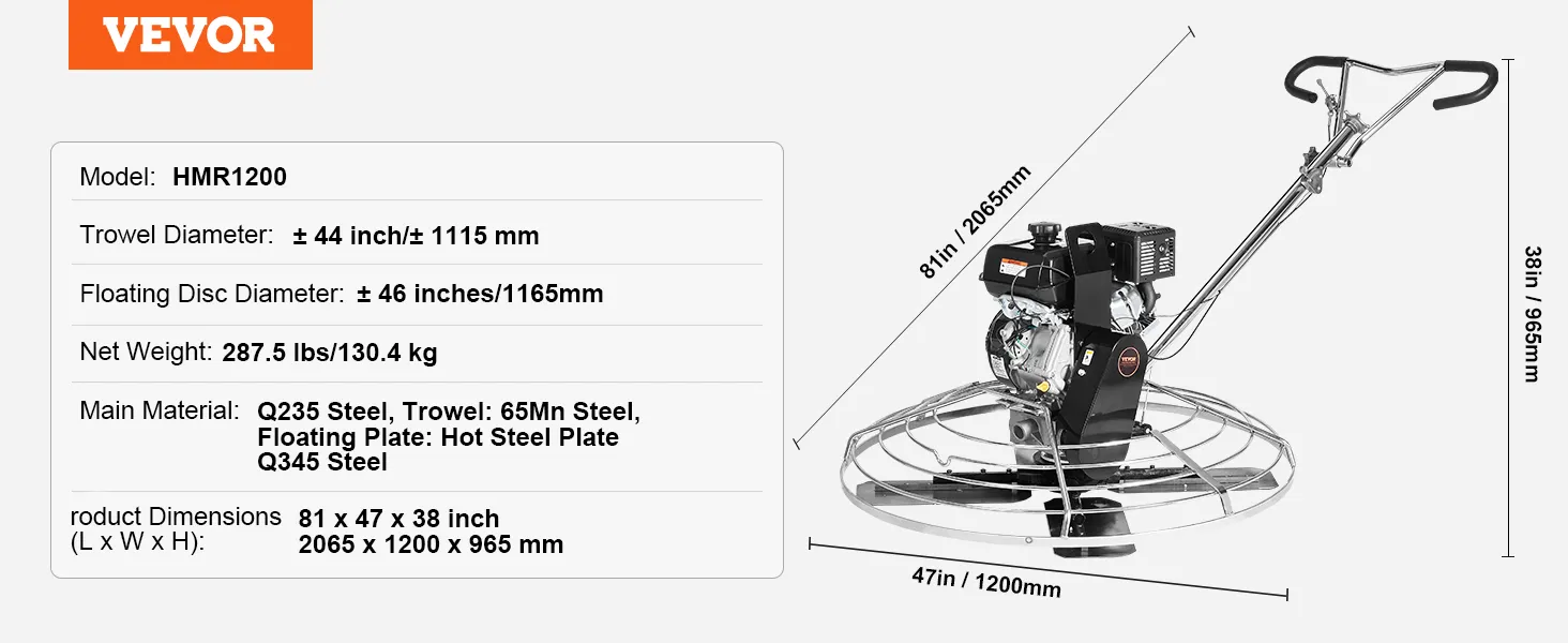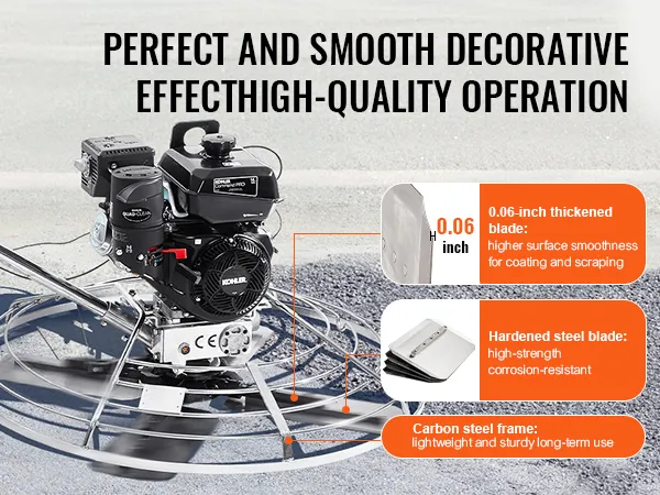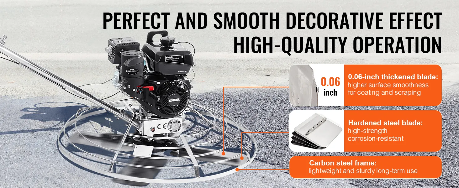 Premium Materials: Featuring four hardened steel blades designed for efficient, large-scale construction, ensuring perfectly smooth finishes. These top-grade blades offer exceptional durability and wear resistance, complete with comprehensive blade guards for safety.