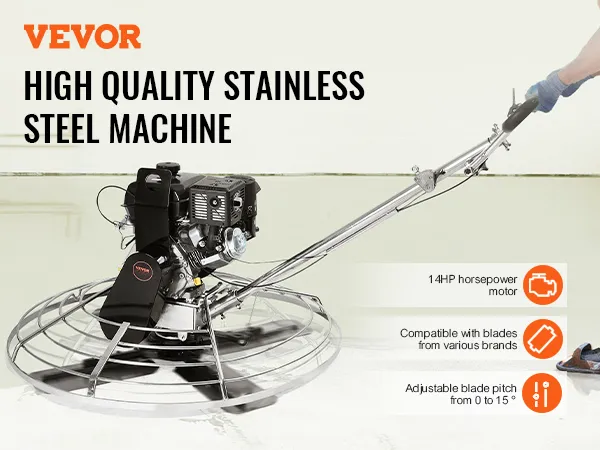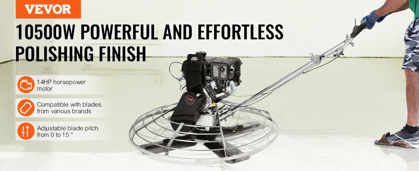 0-28° Blade Pitch: Adjust freely for your desired finish, from matte to sparkling concrete surfaces. Achieve subtle mattes, gentle shines, or dazzling concrete slurries with ease.