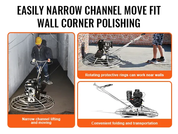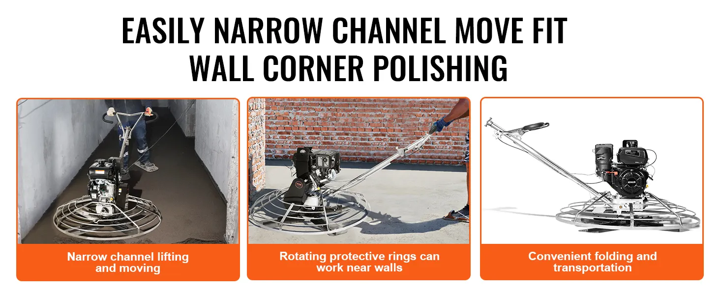 Easily navigate narrow spaces, precisely fit into corners—the best partner for your construction! The compact design of the power trowel allows easy maneuverability in tight areas, freeing up construction space for precise polishing in every corner.