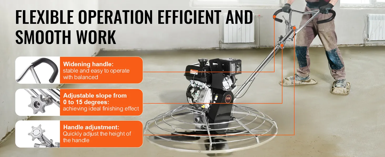 Achieve perfectly smooth finishing effects, meeting high standards of construction quality. Choose our power trowel to make every construction project a model of excellence.
