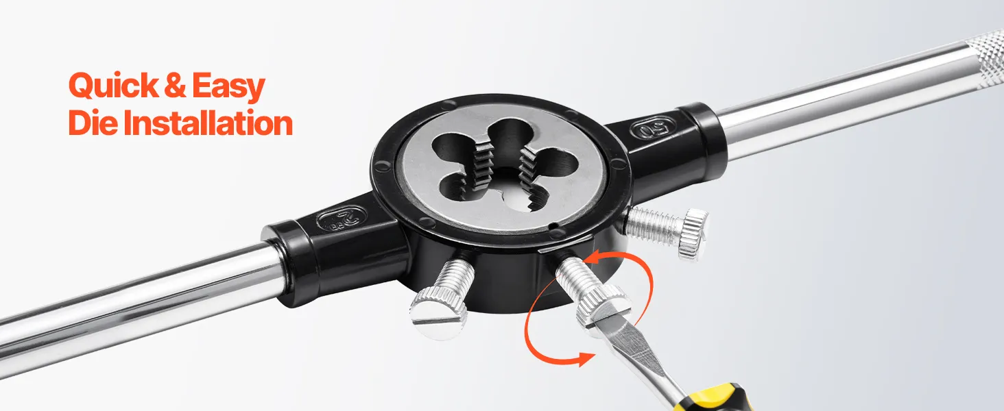 • Extra gereedschap: Deze draadsnijset bevat een verstelbare sleutel, een T-handgreep tapsleutel, een verstelbare snijplaat, een spiraalgroeftrekker, een automatische centerpons en een platte schroevendraaier voor nauwkeurig draadsnijden en verhoogde efficiëntie.
