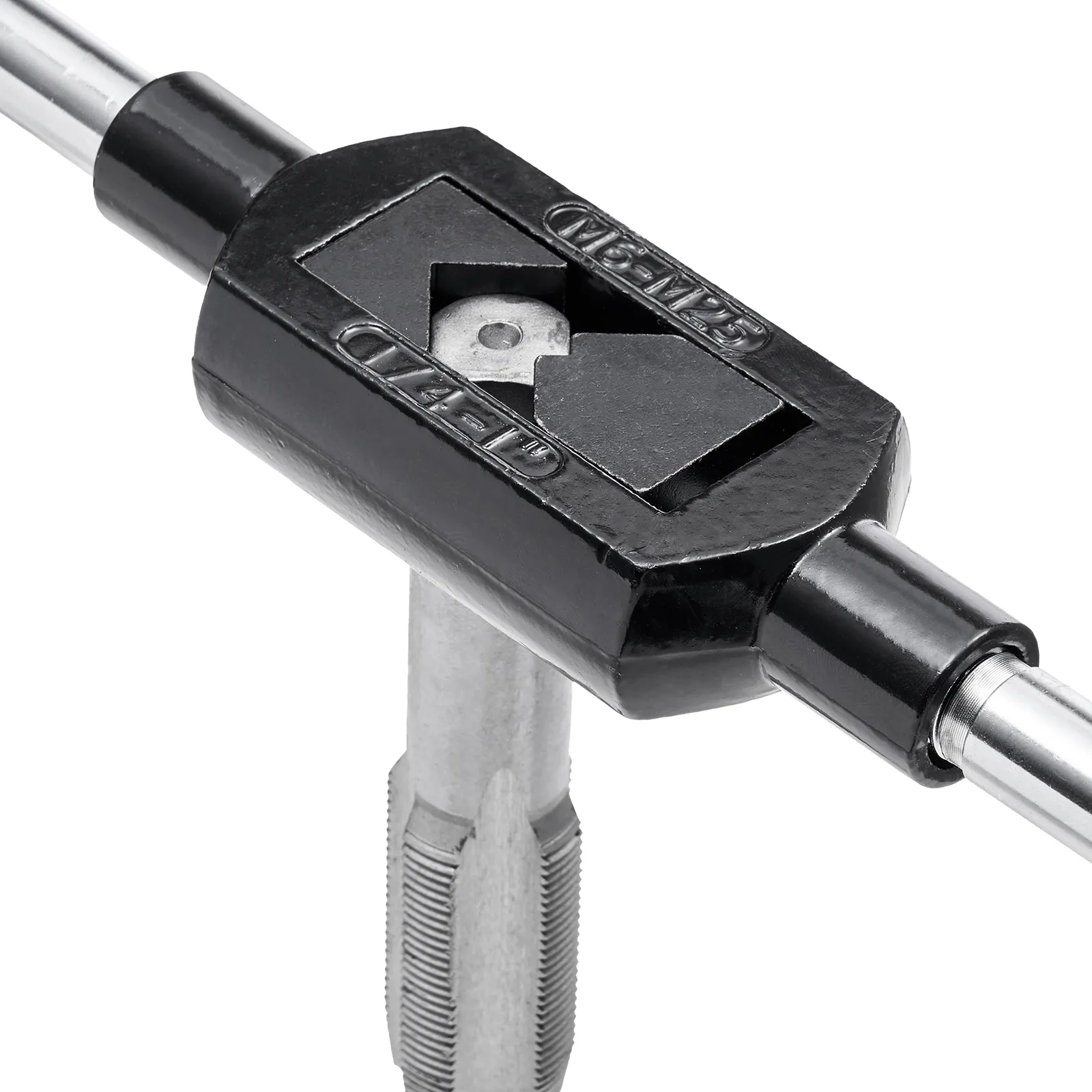 Deze draadsnijset is voorzien van een geribbeld, antislip handvat voor een betere grip en meer stabiliteit tijdens het draaien.