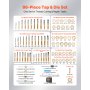 VEVOR 86-delige tap- en snijset, metrische en SAE-maten M3 tot M12, nr. 4 tot 5/8 inch, met grove en fijne tappen en snijplaten, sleutel en draagtas.