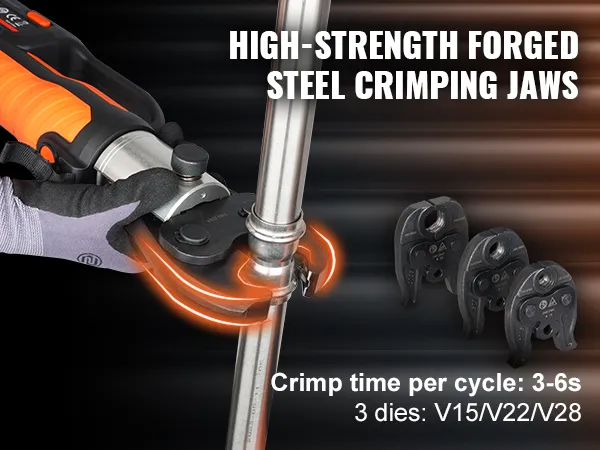 Lithium battery-powered crimping tool for secure pipe connections. Suitable for connecting copper pipes, and stainless steel pipes. Compared to manual models, it saves time and effort with better control. (If you need to crimp other types of tubes, please purchase the corresponding press jaws separately)