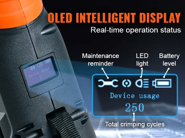 Equipped with an OLED display that provides real-time information on battery levels, working status, and crimping data, allowing users to easily monitor the tool's performance and manage needs.