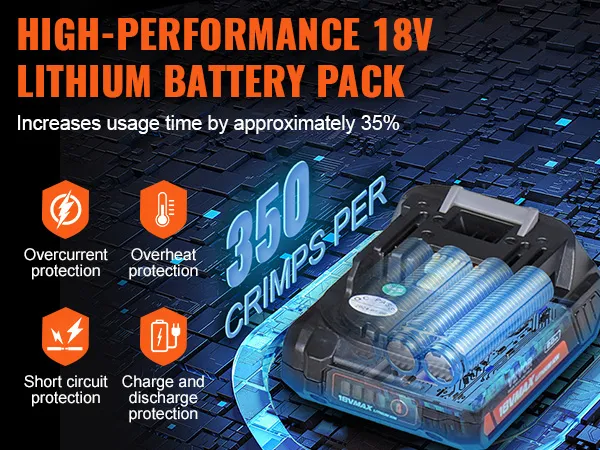 Long-Lasting Battery Life: Includes 2pcs 18V 4.0Ah batteries, supporting up to 350 crimps per full charge, setting a new standard in the industry. Bluetooth connectivity allows you to conveniently check cycle counts and battery life via your smartphone.