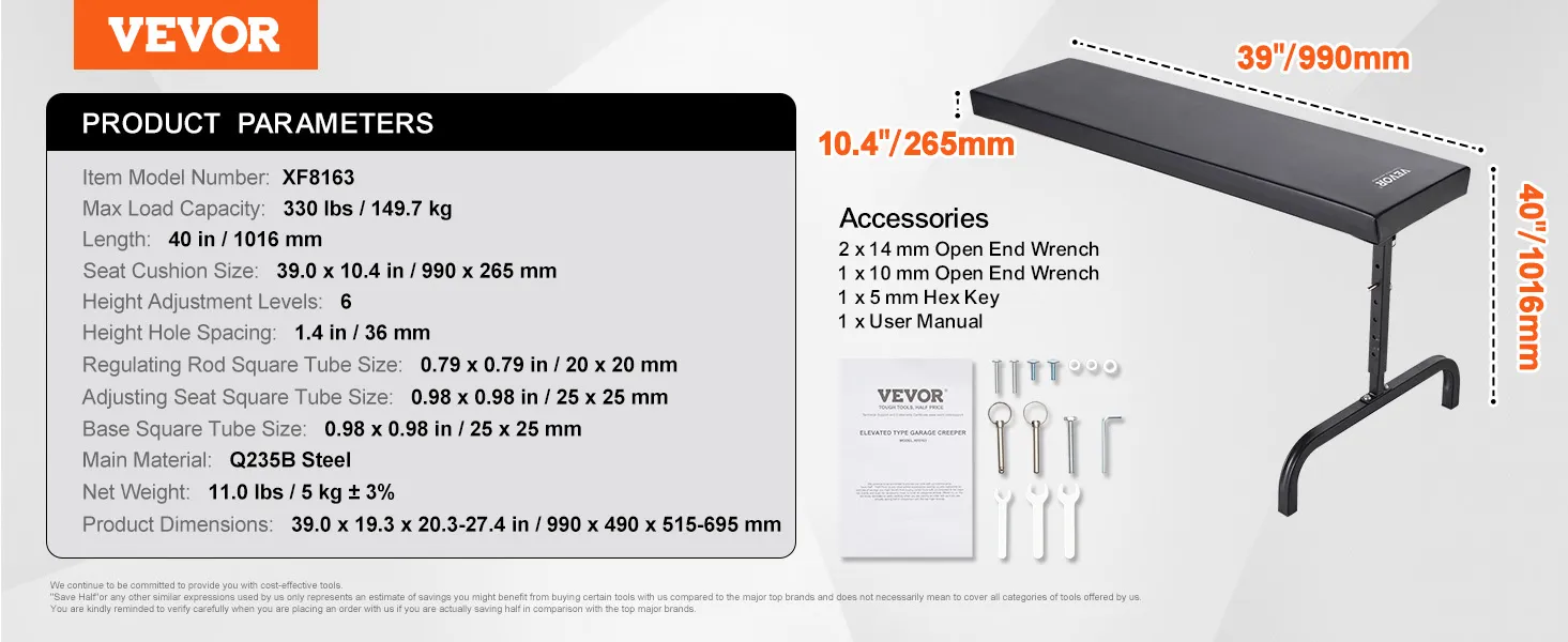 40" Soft, Thick Cushion: With a total length of 40 inches (1 meter), this garage creeper board is especially suitable for taller individuals, offering full back support. The large area of soft vinyl and thick padding ensures comfort without collapsing under extended use.