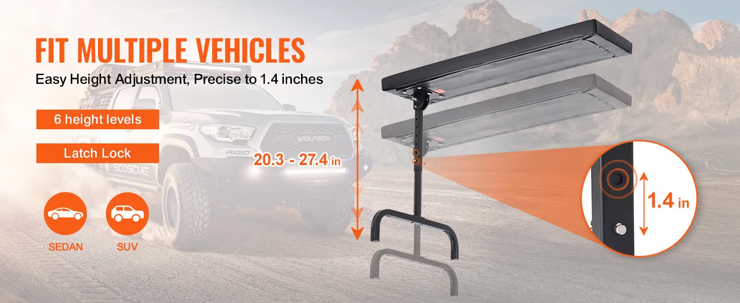 6-Position Adjustable Height: The support frame includes 6 adjustable height settings. Simply select the appropriate pin hole and insert the pin to adjust the cushion height from 20.3 to 27.4 inches (515-695 mm), accommodating various vehicle heights for greater flexibility.