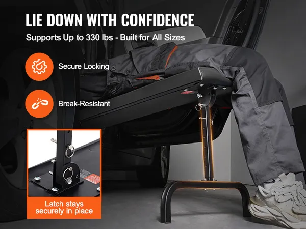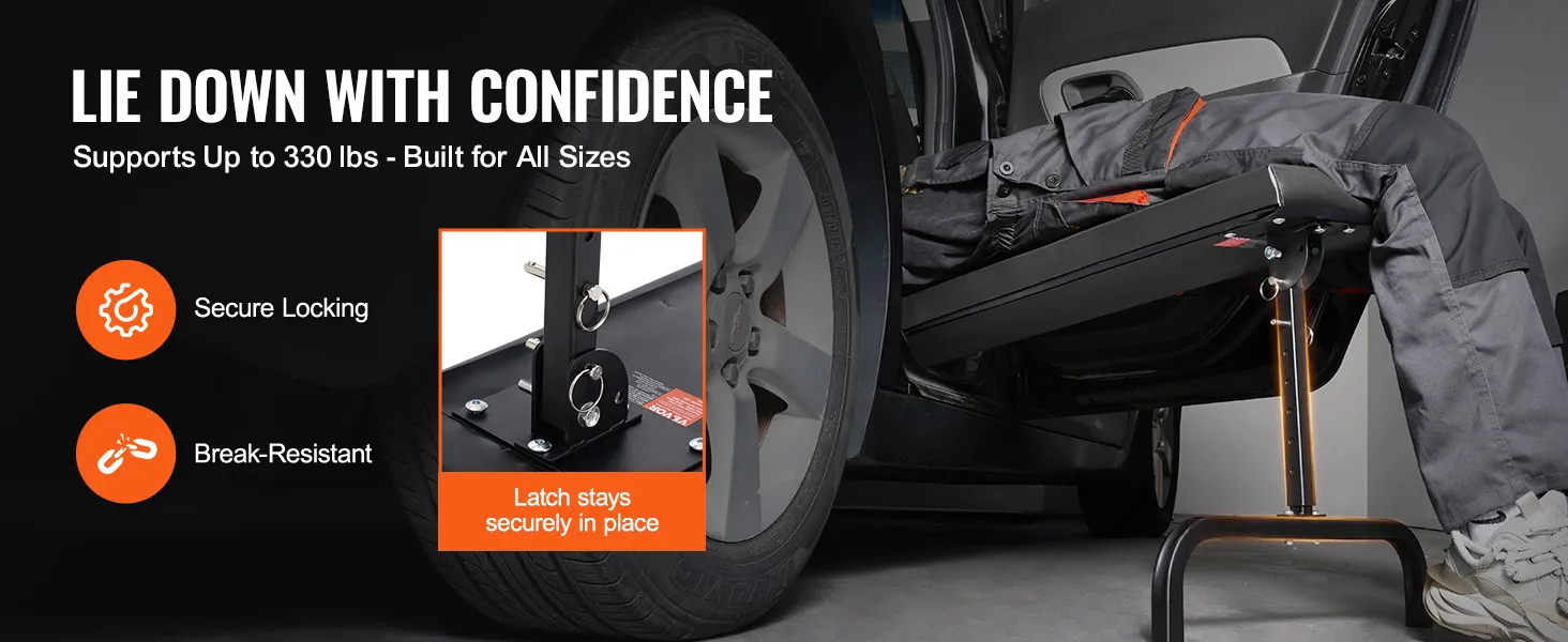 Sturdy and Durable: Supports up to 330 lbs (149.7 kg) with ease. Made from high-performance carbon steel, this automotive creeper offers superior strength and rigidity. Even with a single-leg design, it can handle significant static and dynamic loads without deformation. The welded joints is not easy to break, providing strong stability and avoiding tipping.