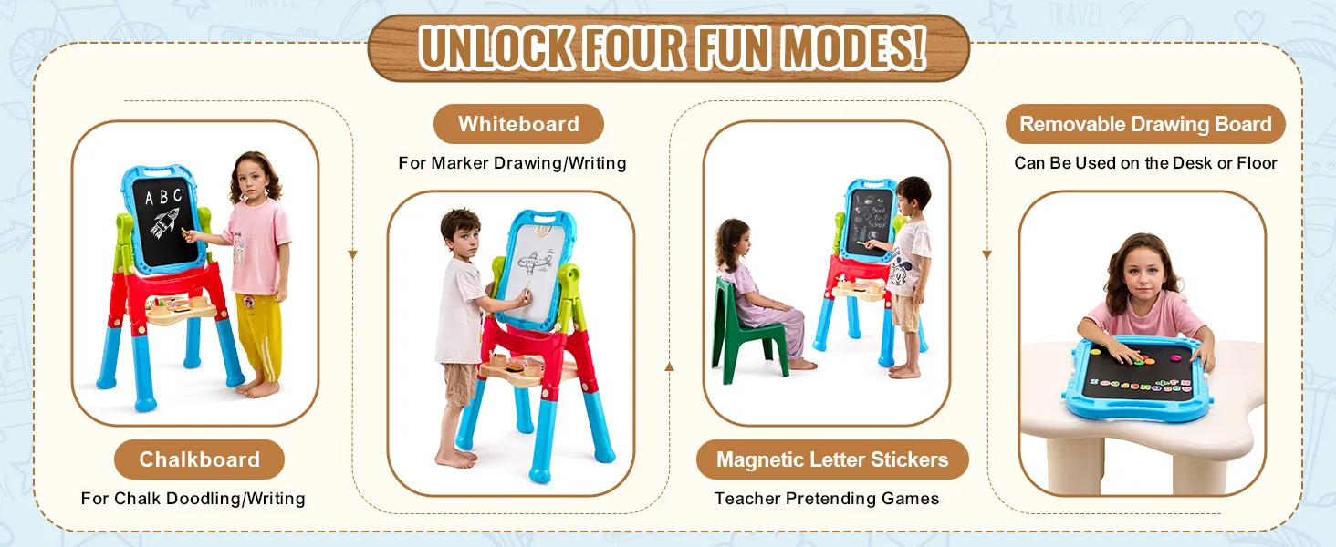 This toddler easel isn't just a toy—it's a way to help your child develop imagination, creativity, artistic skills, and even hand-eye coordination. It's a gift that encourages focus, patience, and a sense of achievement, making it the perfect choice for any young artist!