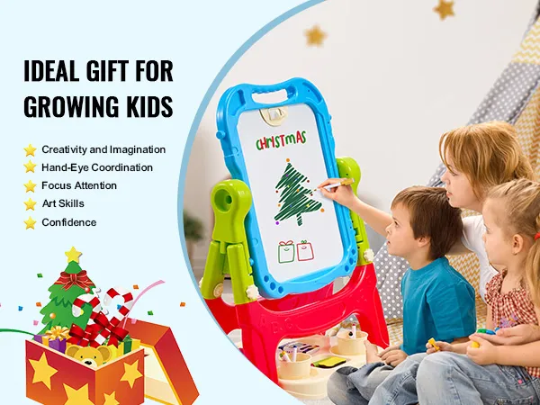 Perfect Gift for Creative Growth: Give a gift that's more than just fun. This toddler art easel helps kids develop fine motor skills, creativity, imagination, and problem-solving abilities. It's a great way to support their growth while keeping them entertained!