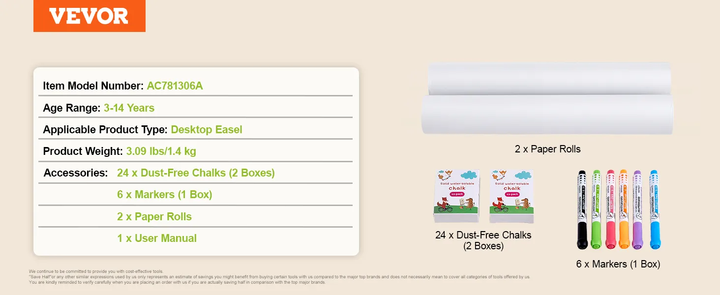 All-in-One Art Set: This easel accessory set includes 24 dust-free chalks, 6 markers, and 2 paper rolls—perfect for kids aged 3 to 10. Whether they're into doodling, writing, or drawing, this set provides everything they need for a fun and creative adventure!
