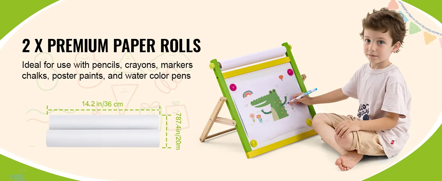 High-Quality Paper Roll: Measuring 787.4 in x 14.2 in (20 m x 36 cm), our paper roll fits perfectly with a tabletop easel or can be spread out on a table or floor. It's all about letting their creativity flow wherever they are.