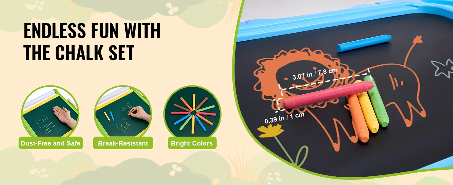 Dust-Free Chalk for Clean Fun: With 7 bright colors, our chalk is great for drawing on the easel or even outside on the ground. The dust-free feature means less mess and easy cleanup, so kids can get creative while you stay care-free.