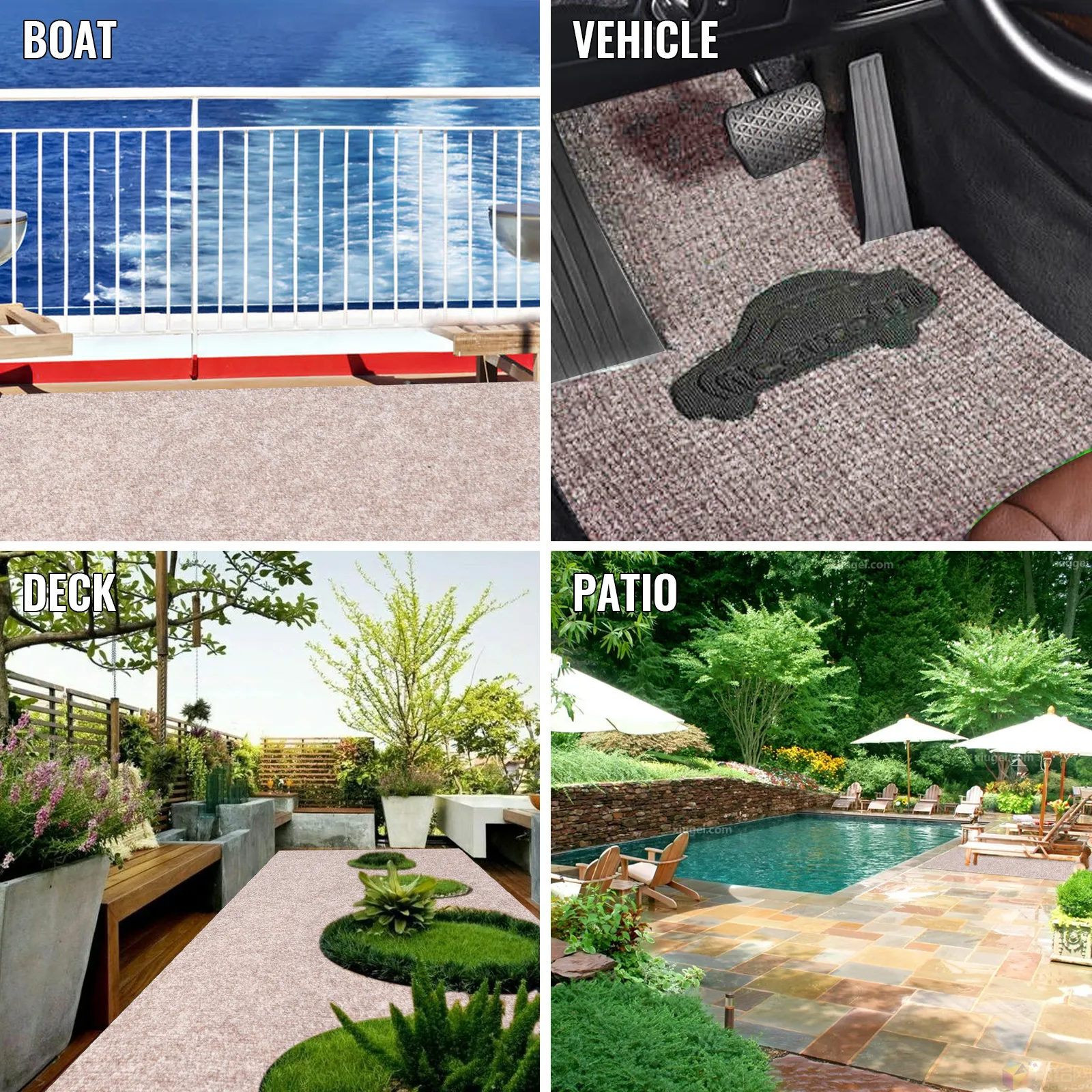 • 【DIVERSE GEBRUIKSCENARIO'S】 - Het tapijt voor boten wordt voornamelijk gebruikt voor boten en auto's. Bovendien is het ook geschikt voor binnen en buiten plaatsen zoals de patio, veranda, dek, serre, kelder, garage, woonkamer, etc. Uitrollen voor gebruik, en oprollen voor gemakkelijke opslag.