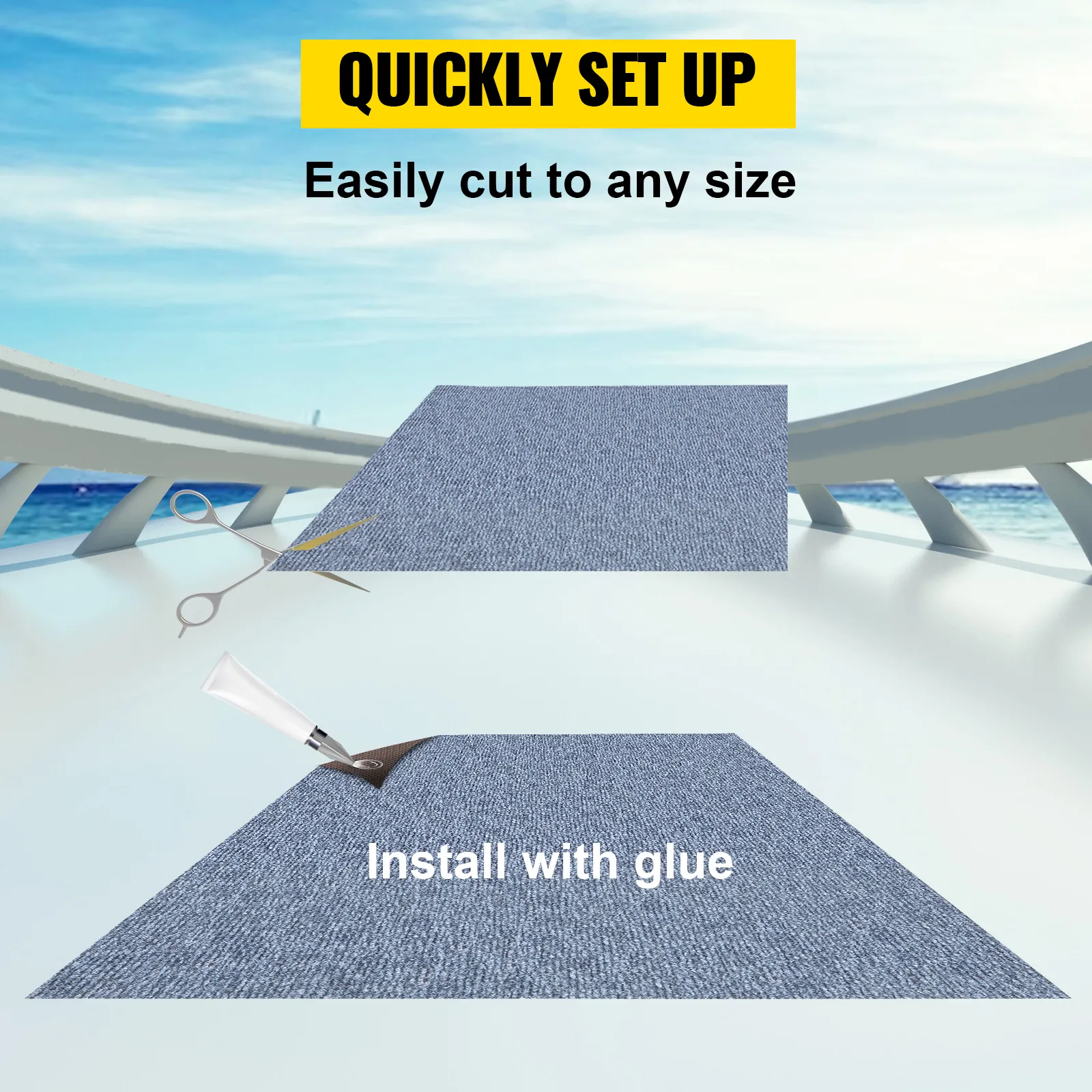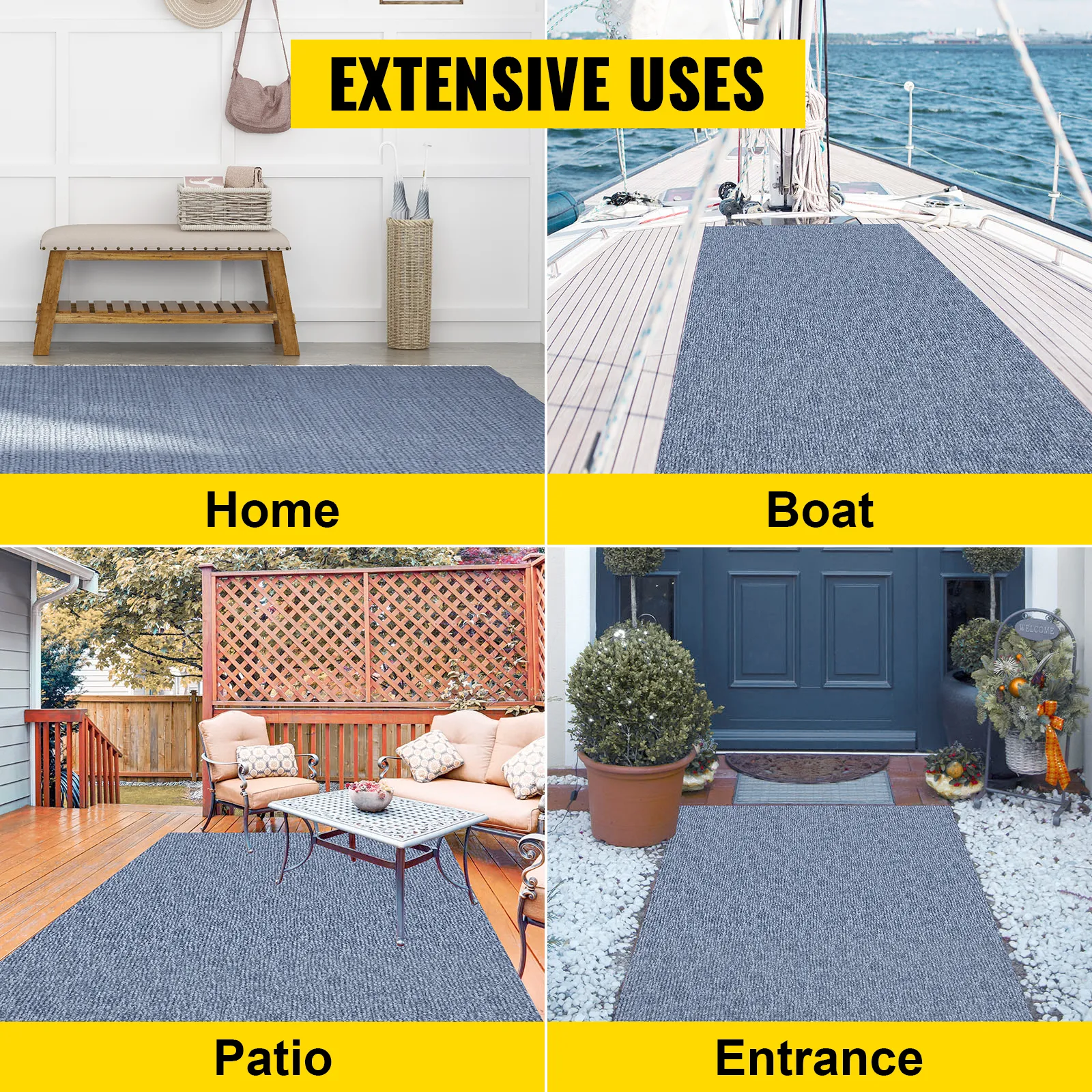 Dit is een groot buitentapijt voor veel plaatsen en het is eenvoudig te leggen. Rol het tapijt gewoon uit en leg het op de vloer. De achterkant TRP is waterdicht.