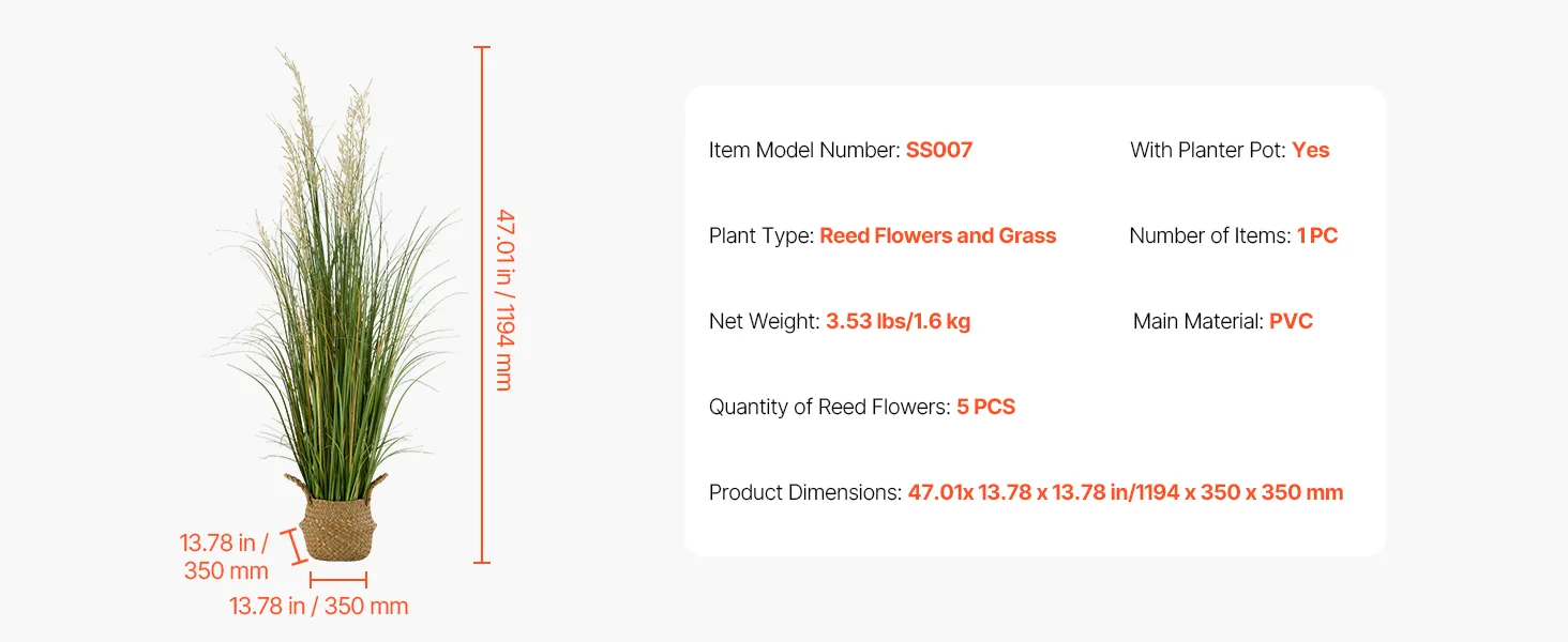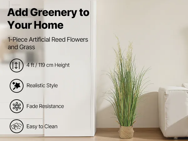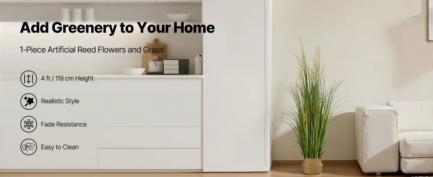 Frisse, natuurlijke decoratie: deze kunstgrasset uit één stuk is 119 cm hoog en heeft vijf rietstengels en gras aan elke stengel. Het voegt een natuurlijke, elegante touch toe aan je leefruimte en creëert een natuurlijke omgeving.