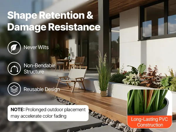 Robuust als nieuw: Deze kunstplant is gemaakt van hoogwaardige PVC-bladeren en zal niet verwelken, verkleuren of buigen. Hij behoudt zijn stabiele uiterlijk, geschikt voor zowel binnen- als buitendecoratie. Let op: Langdurige blootstelling aan de elementen kan leiden tot snellere verkleuring.