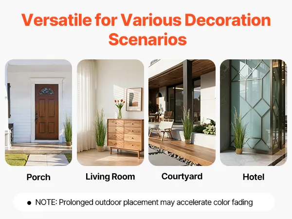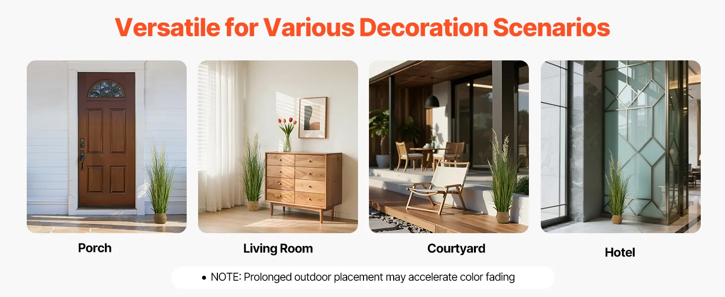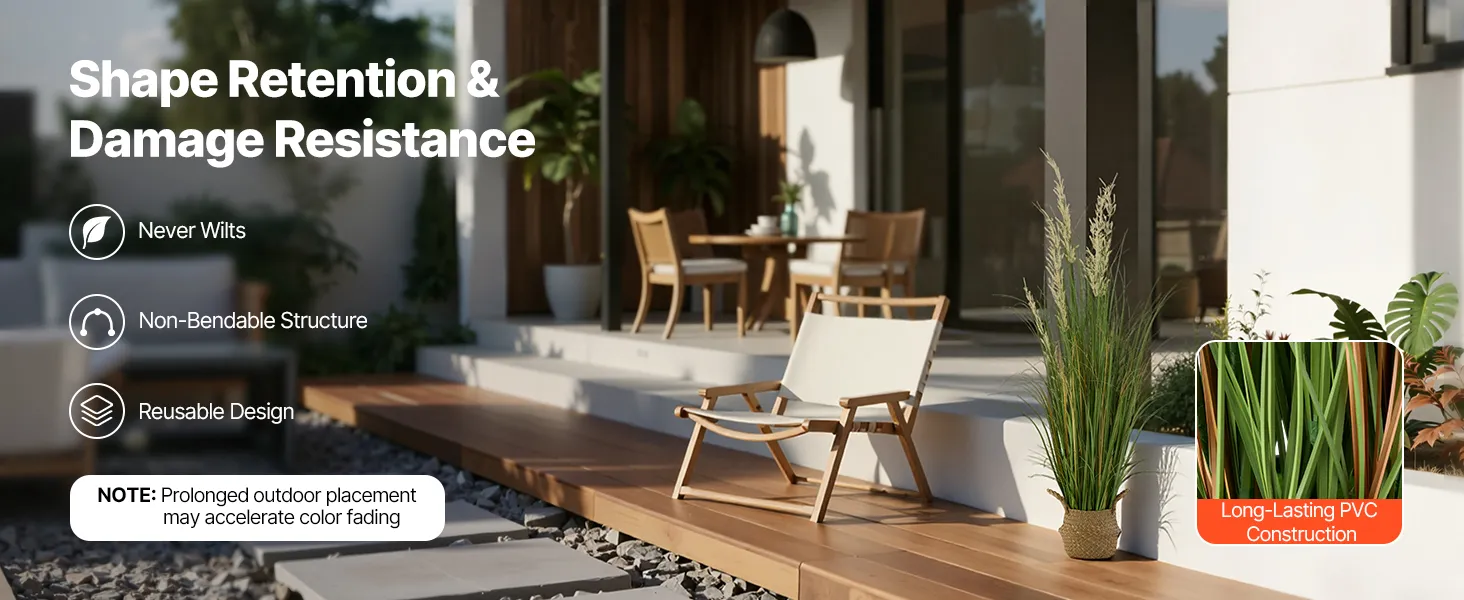 Deze realistische grasplant is geschikt voor zowel binnen als buiten. Of het nu op de veranda, in de woonkamer, in de tuin of in de hotellobby is – hij verfraait elke ruimte direct en zorgt voor een groene sfeer.