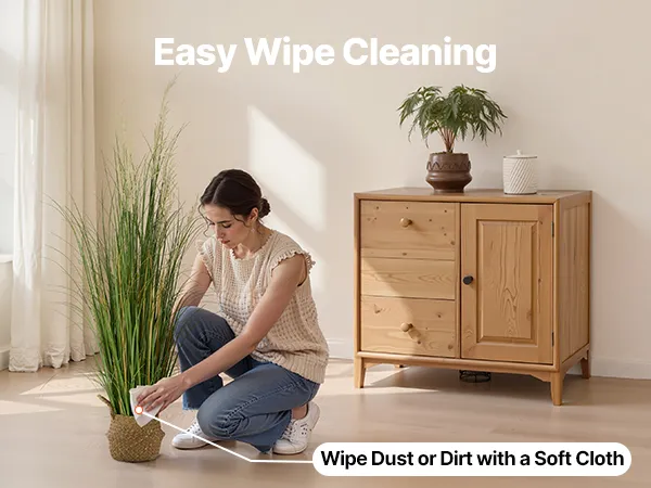 Veeg stof en dagelijkse vlekken eenvoudig weg met een zachte doek. Het decoratieve kunstgras ziet er altijd als nieuw uit met minimale inspanning en is snel en eenvoudig te onderhouden.