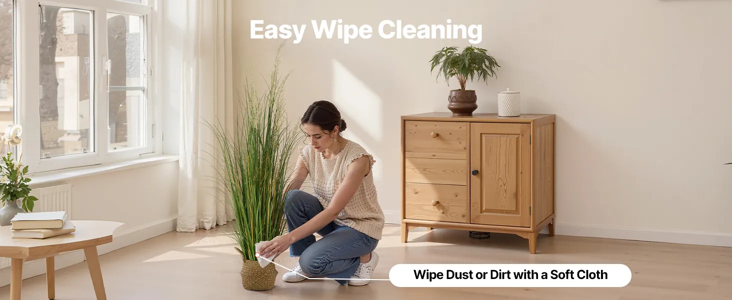 Gemakkelijk te onderhouden: geen water geven, bemesten of snoeien nodig. Ons decoratieve kunstgras blijft groen, ongeacht het klimaat. Even afnemen met een doek is voldoende om het schoon te maken, zodat u moeiteloos kunt genieten van de levendige groene kleur.