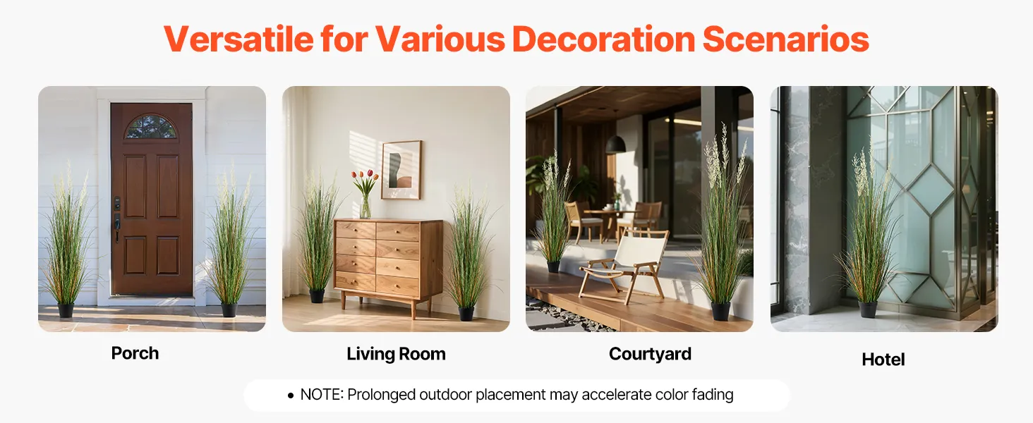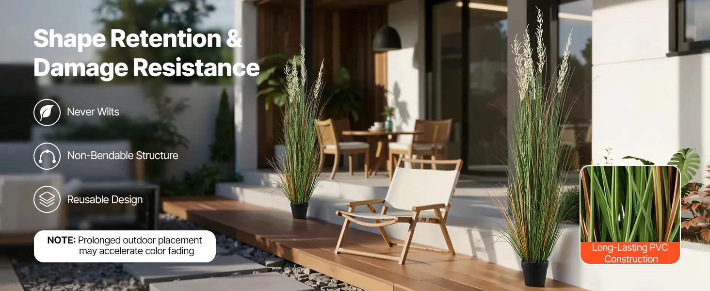 Deze realistische grasplant is geschikt voor zowel binnen als buiten. Of het nu op de veranda, in de woonkamer, in de tuin of in de hotellobby is – hij verfraait elke ruimte direct en zorgt voor een groene sfeer.