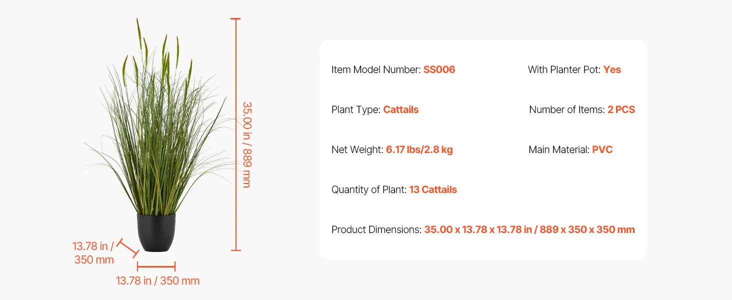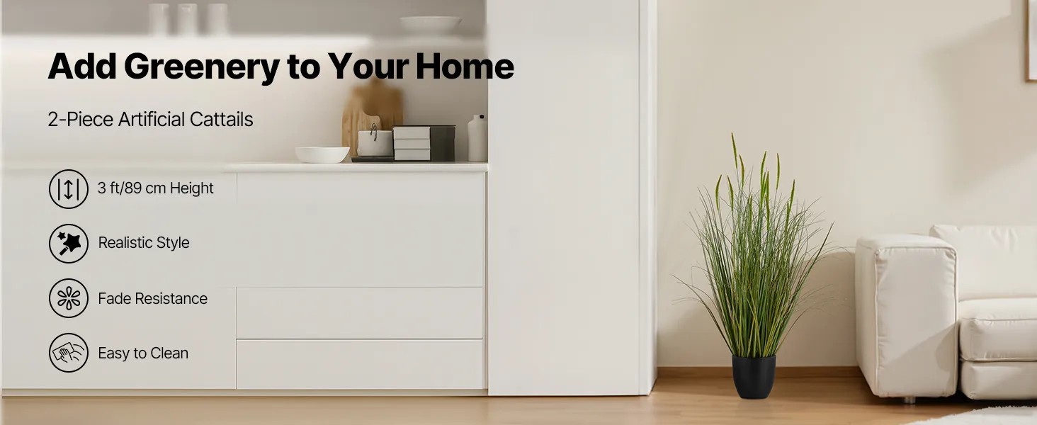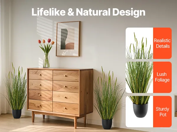 Kunstlisdodden kenmerken zich door hun levensechte uiterlijk en realistische textuur. Ons kunstgras creëert een natuurlijke sfeer die sterk lijkt op echte planten. Het is gemakkelijk te verzorgen en visueel aantrekkelijk, en brengt jarenlang groen in uw kamer.