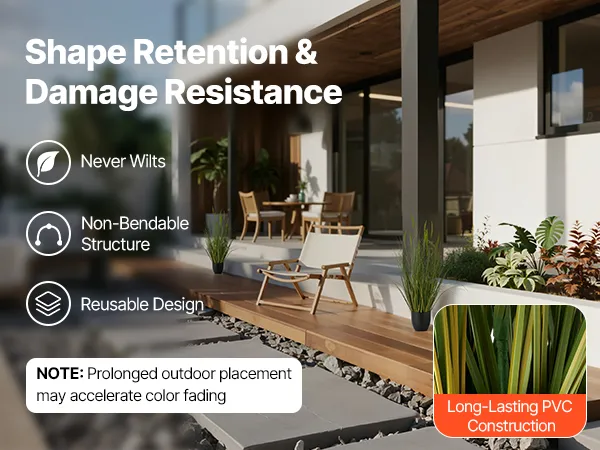 Robuust als nieuw: Deze kunstplant is gemaakt van hoogwaardige PVC-bladeren en zal niet verwelken, verkleuren of buigen. Hij behoudt zijn stabiele uiterlijk, geschikt voor zowel binnen- als buitendecoratie. Let op: Langdurige blootstelling aan de elementen kan leiden tot snellere verkleuring.
