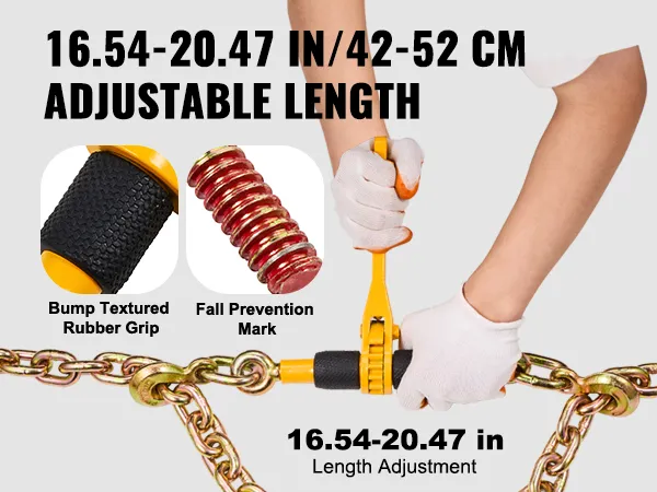 Compatible with 1/4"-5/16" Chains: Ready for chains between 1/4" and 5/16", this ratchet type load binder includes two hooks, one at each end, to fit your specific needs. The width between the two hooks can be manually adjusted from 16.54 to 20.47 inches (42 to 52 cm).