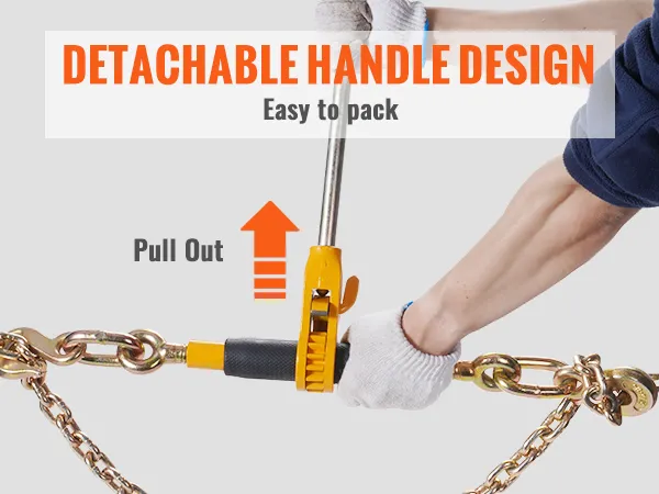 This tensioner is more labor-saving than ordinary ones. You can take the handle off and put it into the toolbox or the narrow storage space in cars. Ideal for bundled transportation of various heavy goods, equipment, and vehicles.