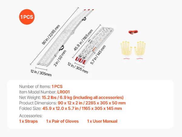 For stable transport of small ATVs, UTVs, motorcycles, and bicycles, this ramp features a durable all-aluminum construction. Its lightweight design and strong load capacity ensure reliable performance, while rubber claw plates and security straps keep it firmly in place.