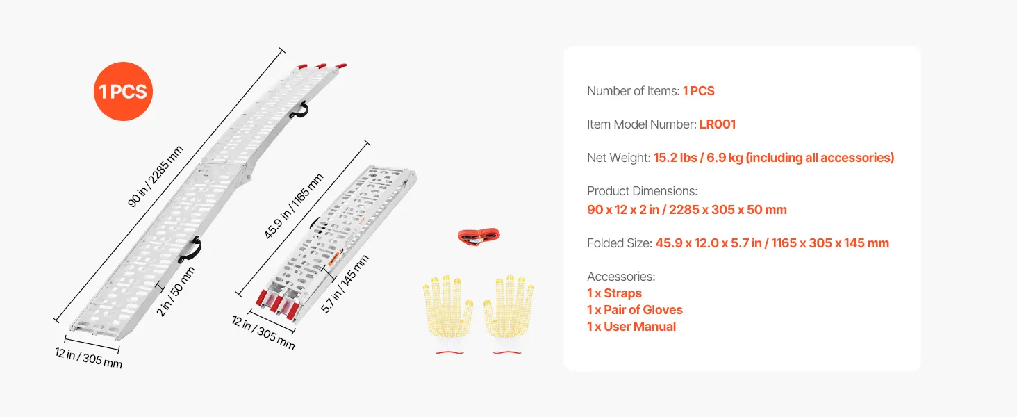 750 lbs Load Capacity: With a load capacity of up to 750 lbs, this arched ramp offers an ideal balance of strength and portability. The single-ramp design is ideal for transporting motorcycles, electric scooters, bicycles, and more.