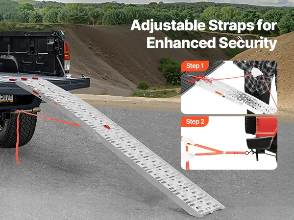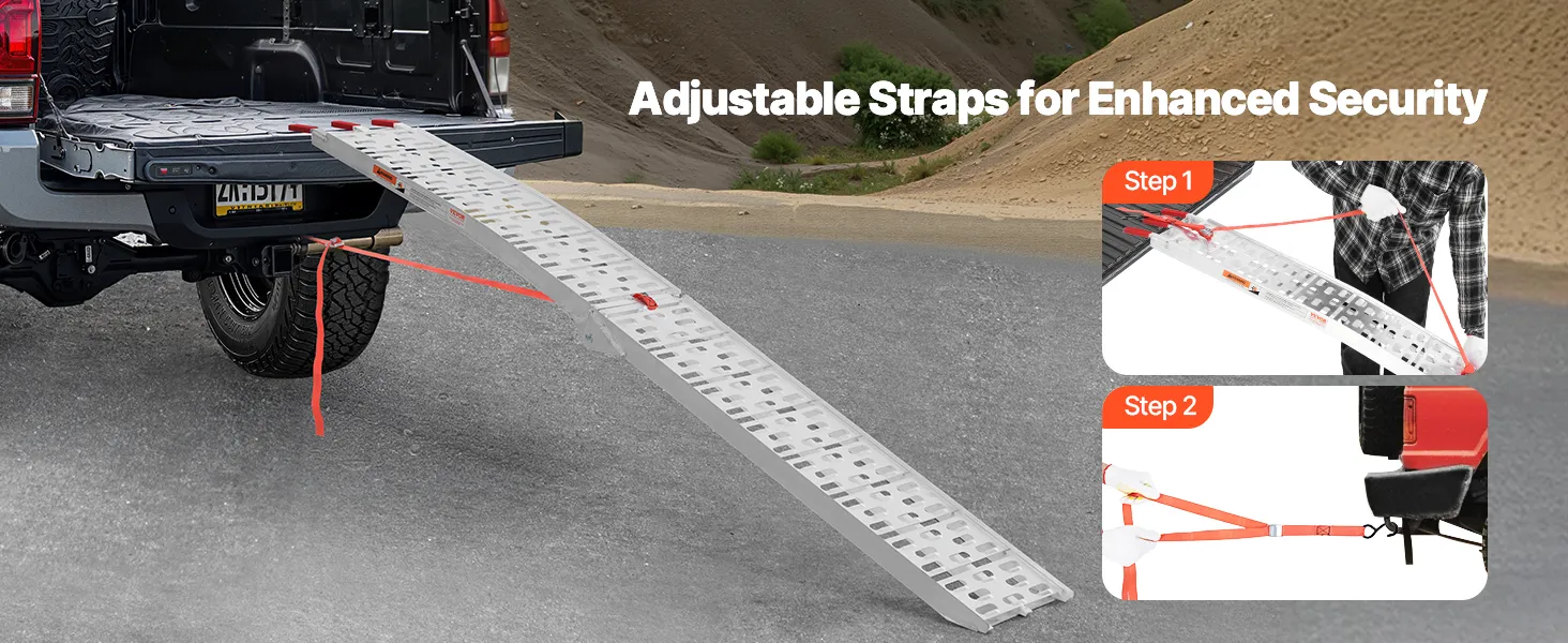 The ramp comes with adjustable security straps to improve stability during use and avoid slipping, offering peace of mind and added security during loading operations.