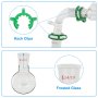 Deze gefractioneerde destillatie is gemaakt van stevig borosilicaatglas met een glad en luchtbelvrij oppervlak. Onze chemieglaswerkset bevat de condensor, kolf, scheitrechter, adapter, glasroerder, stop, clip en buis, die verschillende destillatieapparaten kunnen monteren. Met standaard 24/40 taps geslepen verbindingen, beschikt de destillatieapparatuur voor etherische olie over uitstekende afdichtingsprestaties, ideaal voor destillatie-experimenten en refluxprocessen.