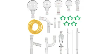 Onze kit voor chemieglaswerk heeft standaard 24/40 conische verbindingen, handig om experimenteerapparatuur aan te sluiten, toe te voegen of te vervangen.