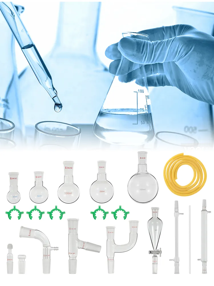 Deze glaswerkkit kan worden gebruikt om verschillende destillatieapparaten, gefractioneerde destillatieapparaten en refluxapparatuur samen te stellen.