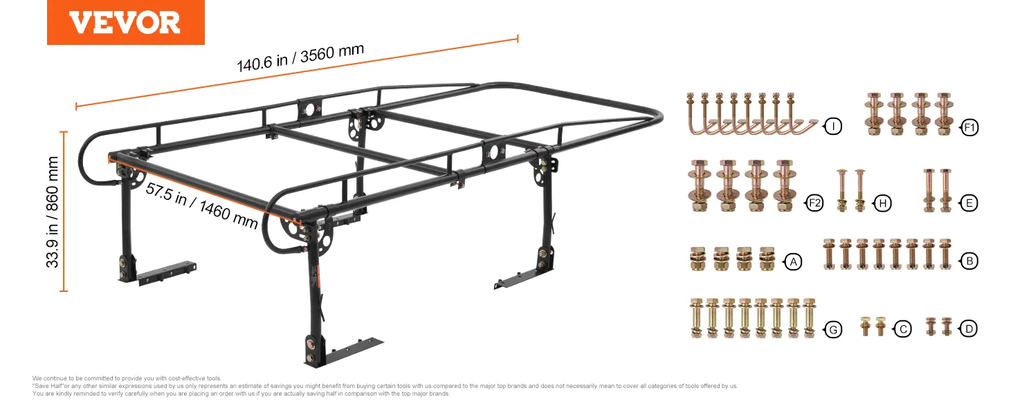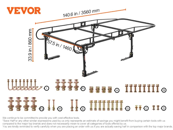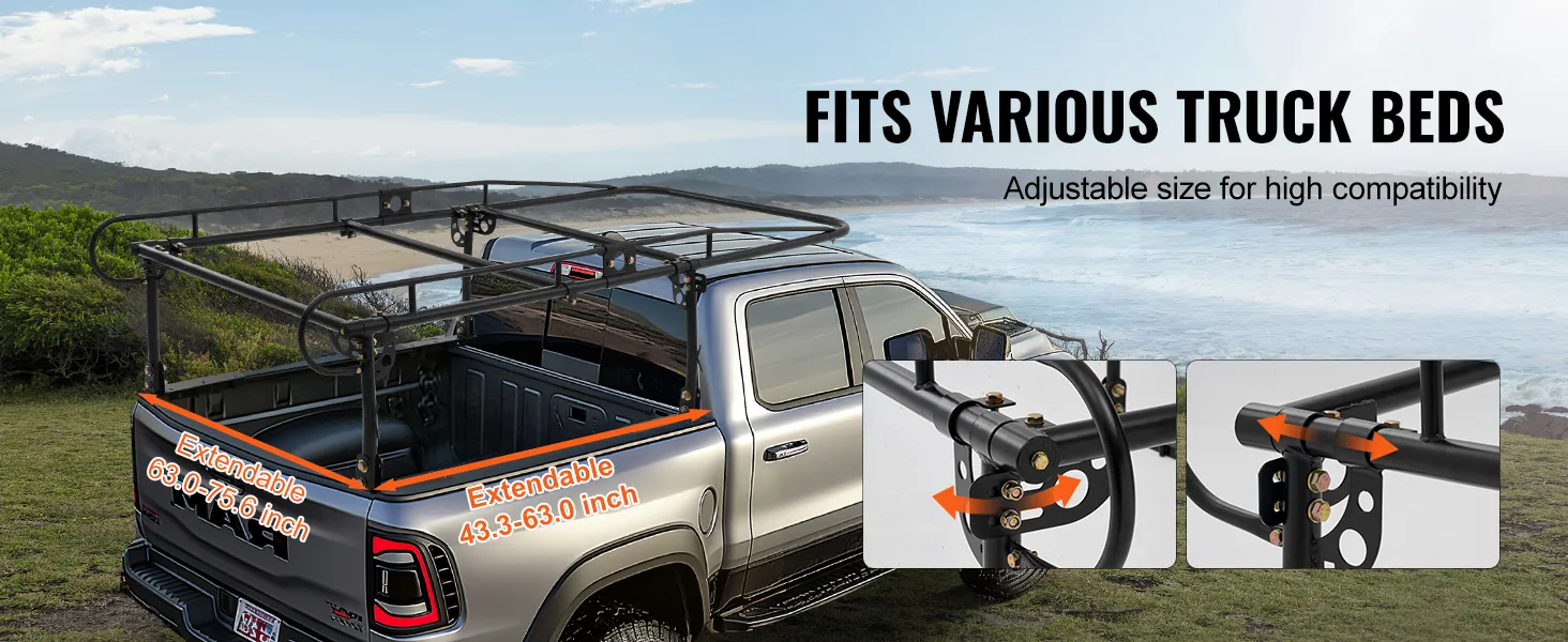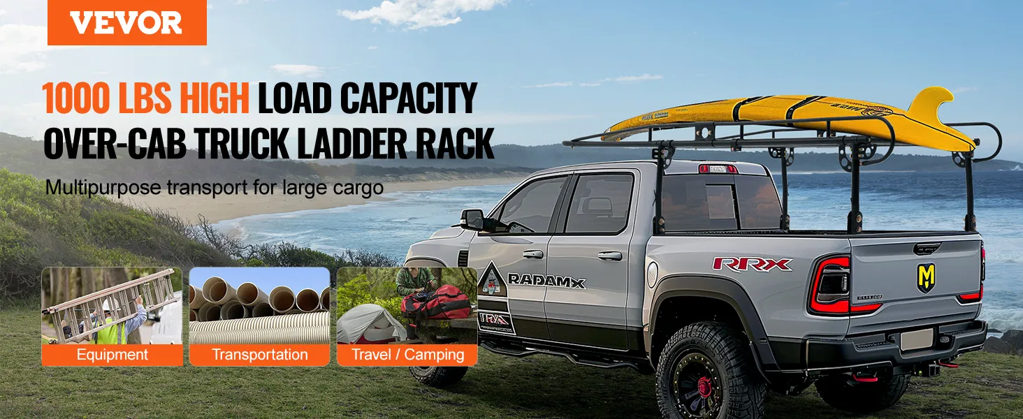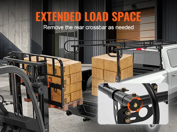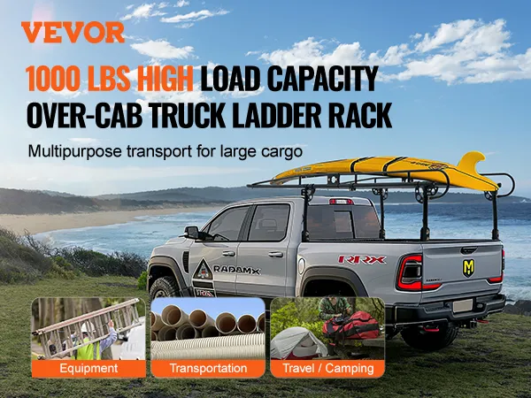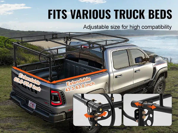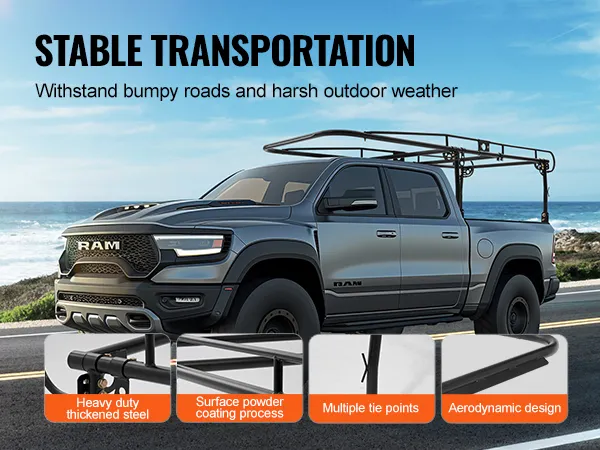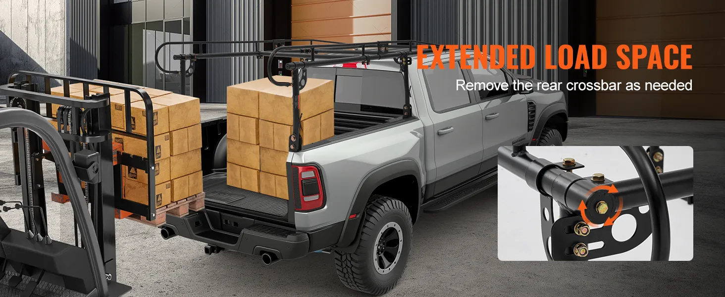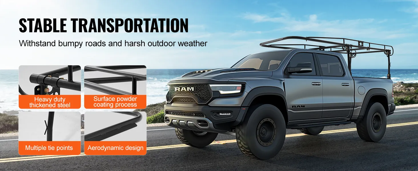 Het ladderrek heeft een draagvermogen van 454 kg. Het verandert uw vrachtwagen in een krachtig mobiel laadplatform dat het vervoeren van diverse grote en zware voorwerpen, zoals ladders, timmerhout, pijpen, enz. vergemakkelijkt.