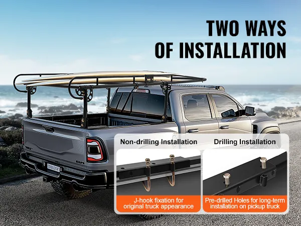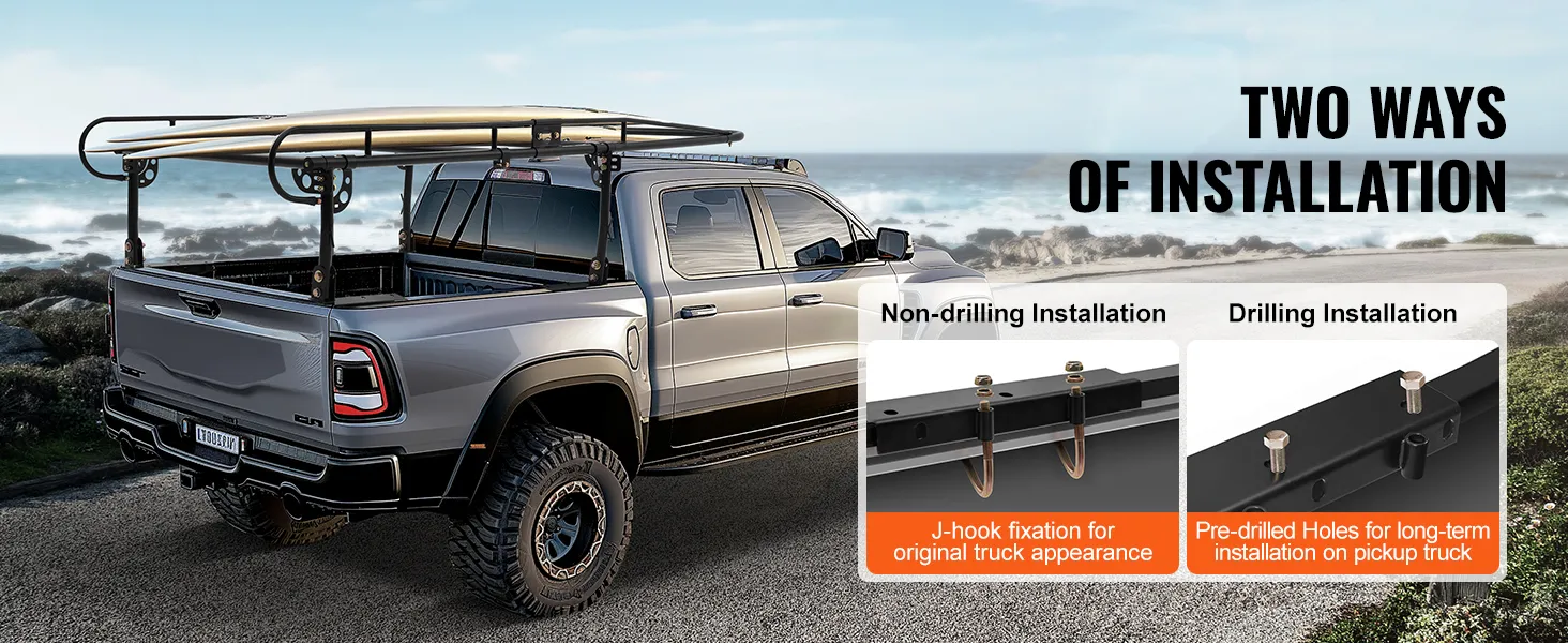 Installatie zonder boren: Ons bagagerek is voorzien van een snelinstallatiesysteem met J-bouten (8 stuks) waarvoor boren niet nodig is. Het beschadigt de zijhekken van uw vrachtwagen niet en kan snel worden verwijderd. Ook hebben we gaten in de montagebeugels geboord, zodat permanente montage optioneel is.