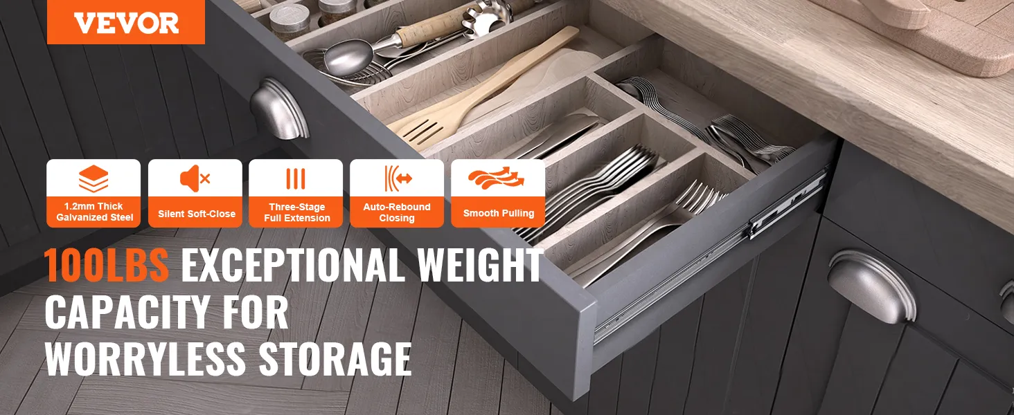 Het is geweldig om de VEVOR ladegeleiders soepel en stil te gebruiken. Ze hebben kogellagers die zorgen voor moeiteloze beweging. U kunt de lades openen en sluiten zonder geluid. De soft-close functie voorkomt struikelen. Het zorgt er ook voor dat de planken zacht en stil sluiten. Dit is perfect voor keukens en slaapkamers. U hoeft zich geen zorgen te maken over harde geluiden. Soepele bediening maakt het gebruik van deze geleiders plezierig. Ze voegen elegantie toe aan elk meubel. Deze geleiders zijn ontworpen voor gemak en comfort.