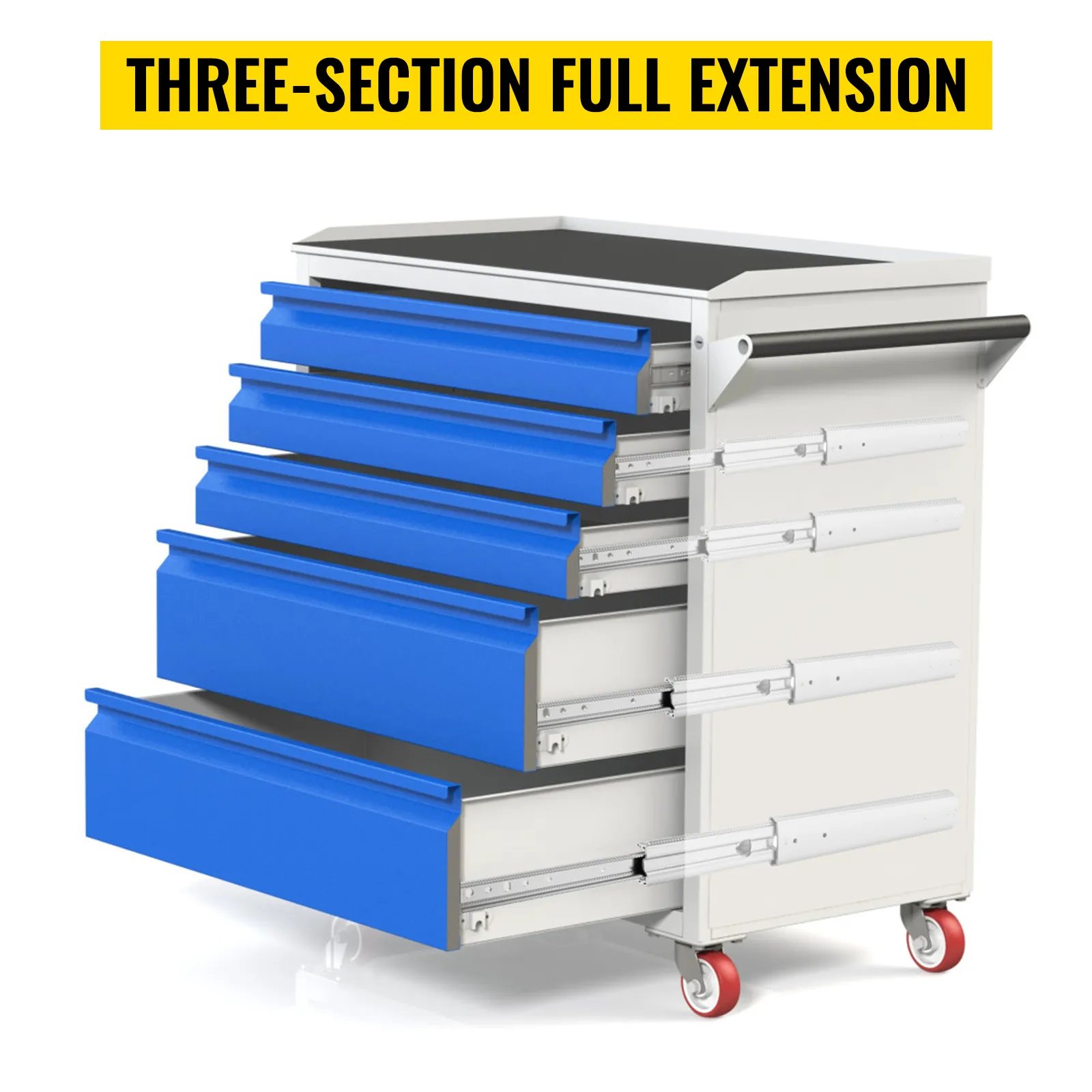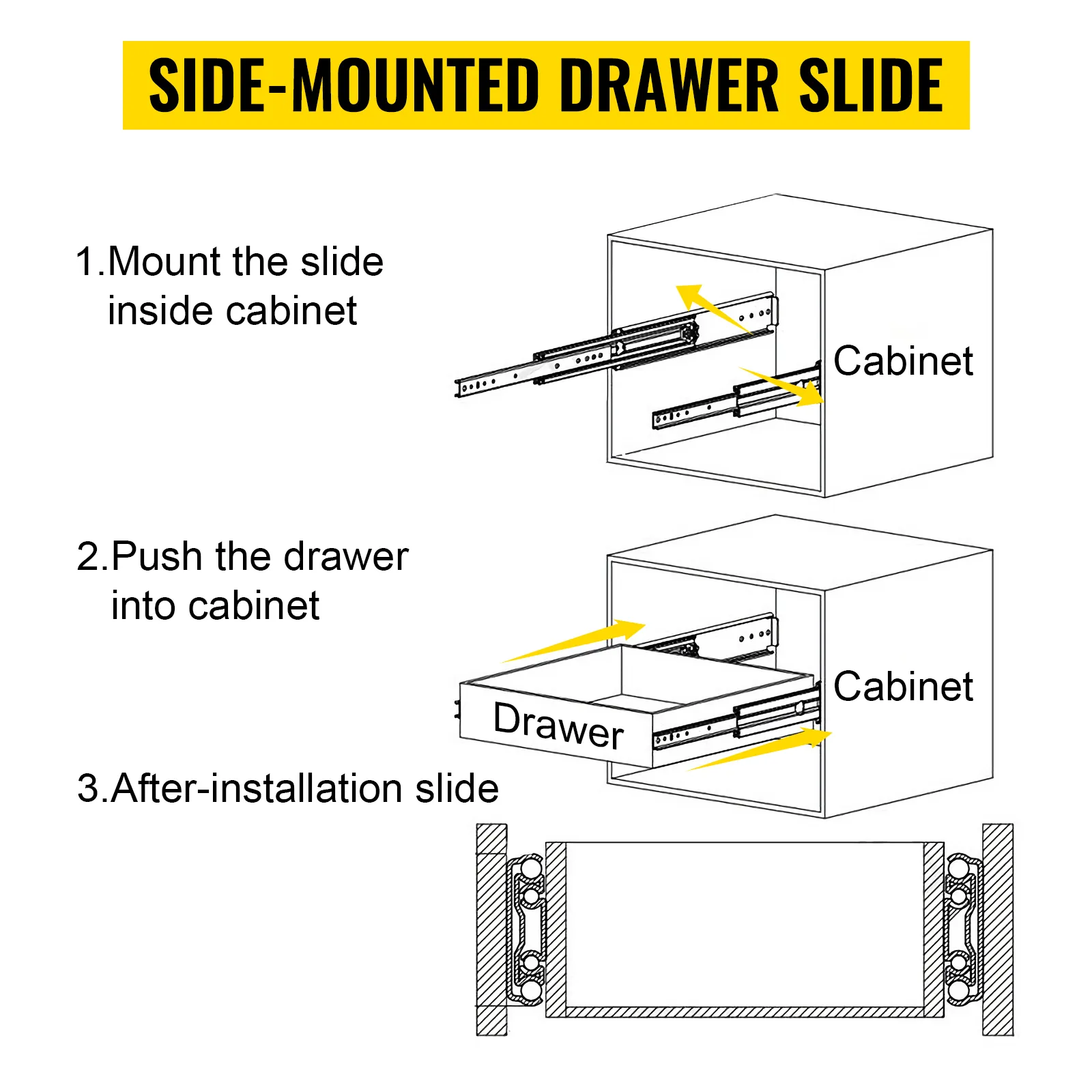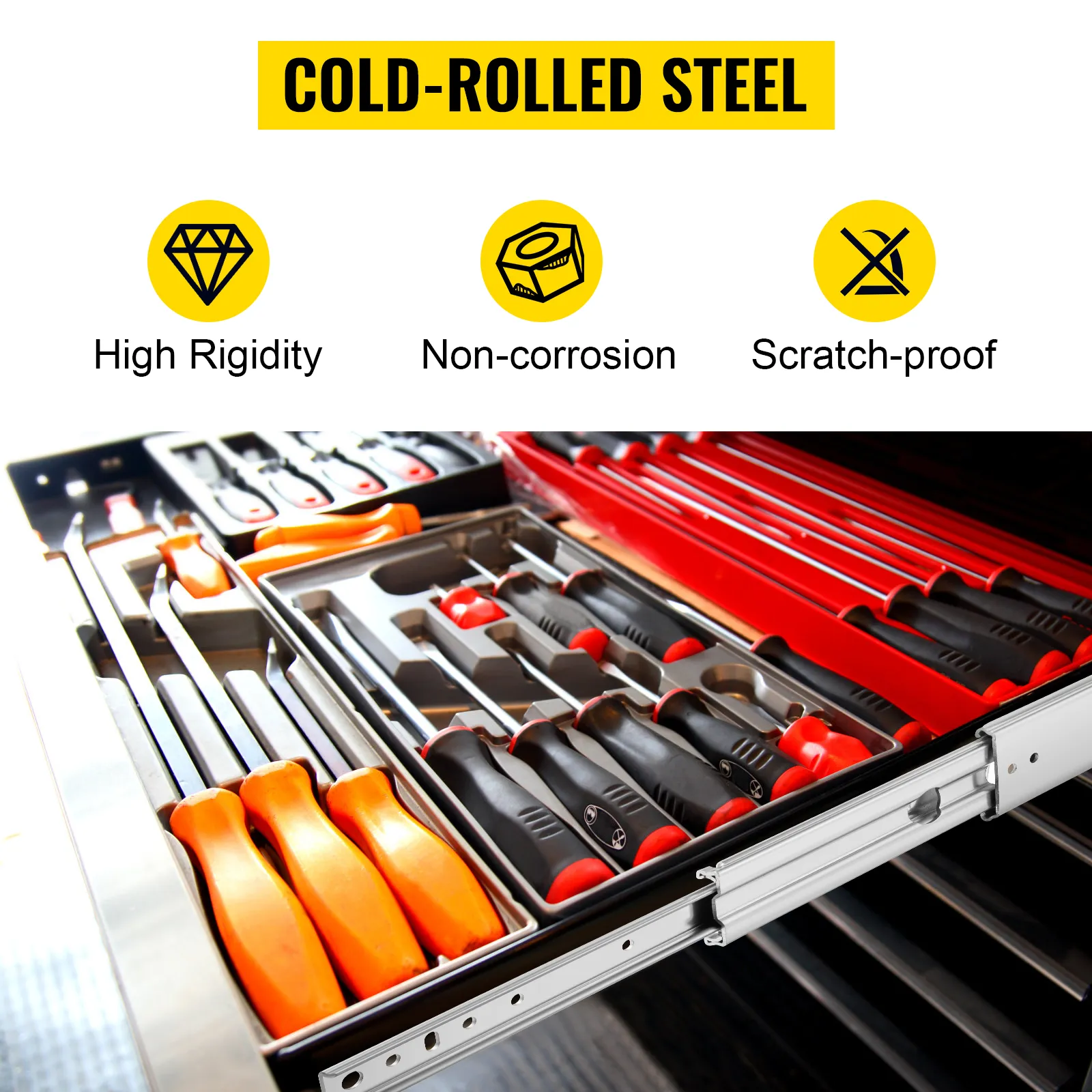 Made from high-grade cold-rolled steel that is zinc plated can effectively keep the drawer glides and slides scratch-proof, abrasion-proof, and away from corrosion and rust.