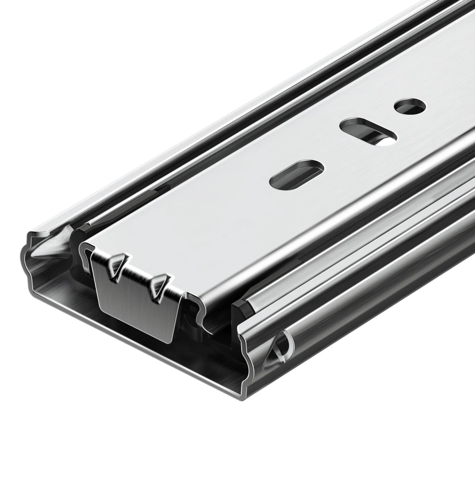 Met een uitstekend draagvermogen van 45 kg zorgen deze rails voor een betrouwbare opbergervaring. Ze zijn gemaakt van 1,2 mm dik gegalvaniseerd staal en bieden een soepele, stille werking, volledige drie-traps uitschuifbaarheid en moeiteloos glijden. Dit is de perfecte combinatie van superieure kwaliteit en gebruiksgemak.