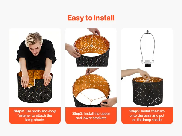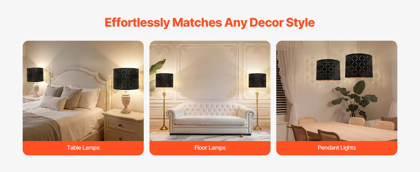 Elegant design: de stijlvolle, holle lampenkap met zwart-gouden kleurstelling past bij diverse interieurstijlen. Of het nu in de slaapkamer, woonkamer of studeerkamer is, deze veelzijdige lampenkap verfrist moeiteloos uw ruimte.